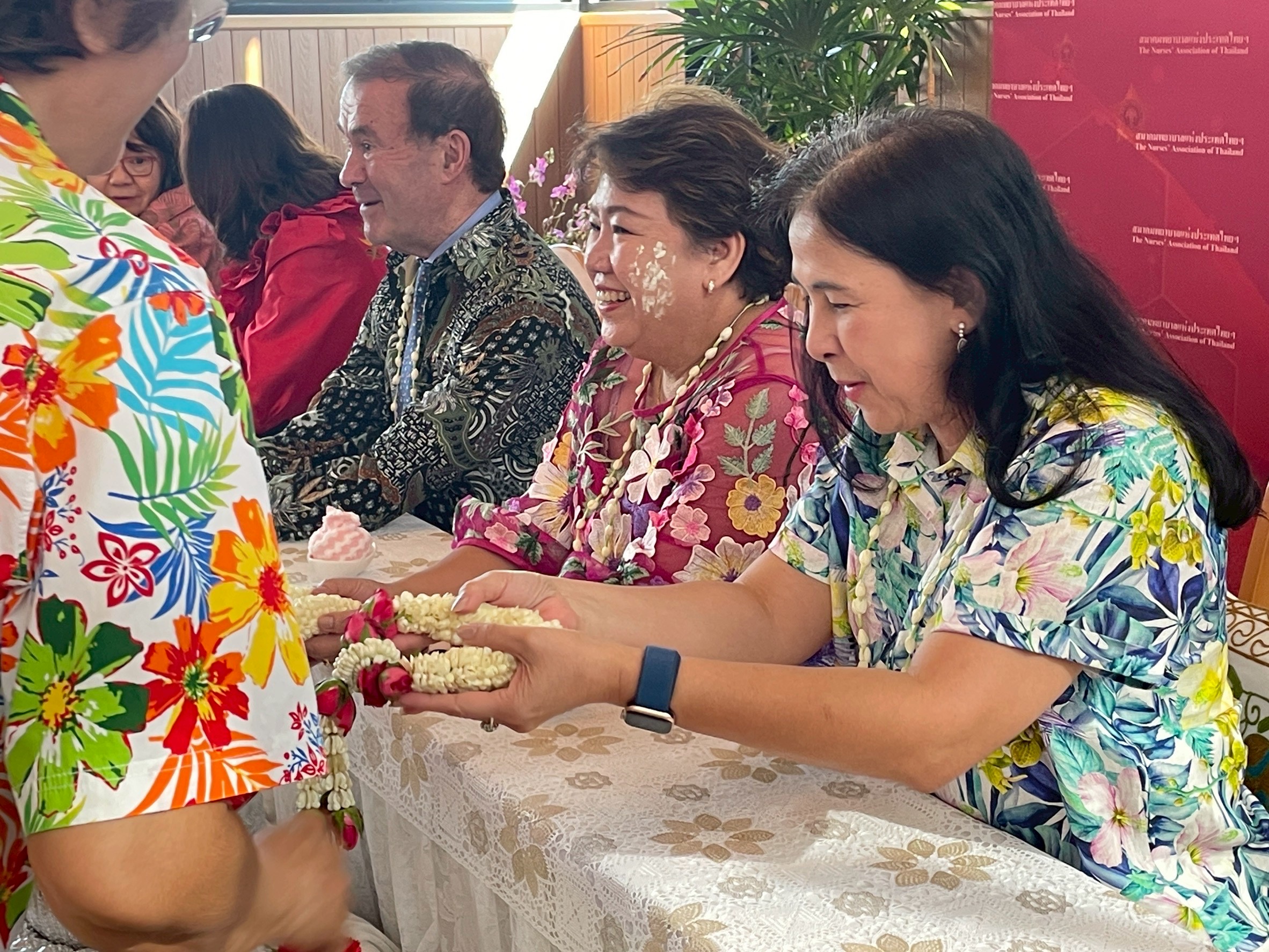 จากนั้น เนื่องในวาระในวันสงกรานต์เทศกาลวันปีใหม่ไทย ทางคณะกรรมการผู้จัดงานสมาคมพยาบาลแห่งประเทศไทยฯ ได้จัดพิธีรดน้ำดำหัวเพื่อเป็นสิริมงคลแก่ผู้ร่วมงาน สืบสารวัฒนธรรมอันดีงามของไทยในครั้งนี้ด้วย