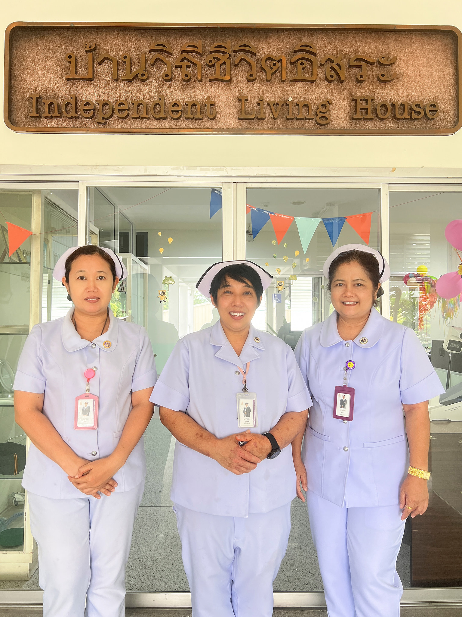 แพทย์หญิงภัทรา อังสุวรรณ ผู้อำนวยการสถาบันสิรินธรเพื่อการฟื้นฟูสมรรถภาพทางการแพทย์แห่งชาติ กล่าวเพิ่มเติมว่า งานฝึกทักษะคนพิการมีการทำงานร่วมกับสหสาขาวิชาชีพ มีการประสานกับแพทย์ พยาบาลเจ้าของไข้ นักกายภาพบำบัด นักกิจกรรมบำบัดหรือเจ้าหน้าที่ผู้เกี่ยวข้องทันทีที่พบปัญหาและดำเนินการตามแผนการรักษา นอกจากนี้ยังมีการทำงานร่วมกับชุมชนคนพิการ คือ ศูนย์การดำรงชีวิตอิสระของคนพิการกรุงเทพมหานคร ศูนย์การดำรงชีวิตอิสระของคนพิการจังหวัดนนทบุรี และสภาศูนย์การดำรงชีวิตอิสระของคนพิการ ในการให้บริการแก่ผู้ป่วยใน ผู้ป่วยนอก และญาติในการสนับสนุนกิจกรรมเพื่อให้ผู้ป่วย/คนพิการสามารถดำรงชีวิตอิสระได้ โดยเน้นเรื่องการให้คำปรึกษาฉันเพื่อน การทำกลุ่มเพื่อนช่วยเพื่อน และการวางแผนการพัฒนาศักยภาพคนพิการ เป็นหลักและเป็นแหล่งศึกษาดูงาน และแหล่งฝึกของหลักสูตรการพยาบาลเฉพาะทาง 4 เดือน สาขาการพยาบาลฟื้นฟูสภาพ งานฝึกทักษะคนพิการมีช่องทางการให้บริการคือ ให้บริการแก่ผู้ป่วยในที่พักรักษาที่สถาบันสิรินธรเพื่อการฟื้นฟูฯ ให้บริการแก่ผู้ป่วยนอกโดยแพทย์เป็นผู้สั่งการรักษา และการให้บริการทางโทรศัพท์ ทาง Line เช่น การให้คำปรึกษา เรื่องการใช้ชีวิตด้วยตนเอง (การดำรงชีวิตอิสระ) การตอบปัญหาสุขภาพ การคำปรึกษา รวมถึงการติดตามอาการ และนัดหมายการมารับบริการล่วงหน้า เพื่อความสะดวก ประหยัดเวลาและลดค่าใช้จ่ายในการเดินทาง