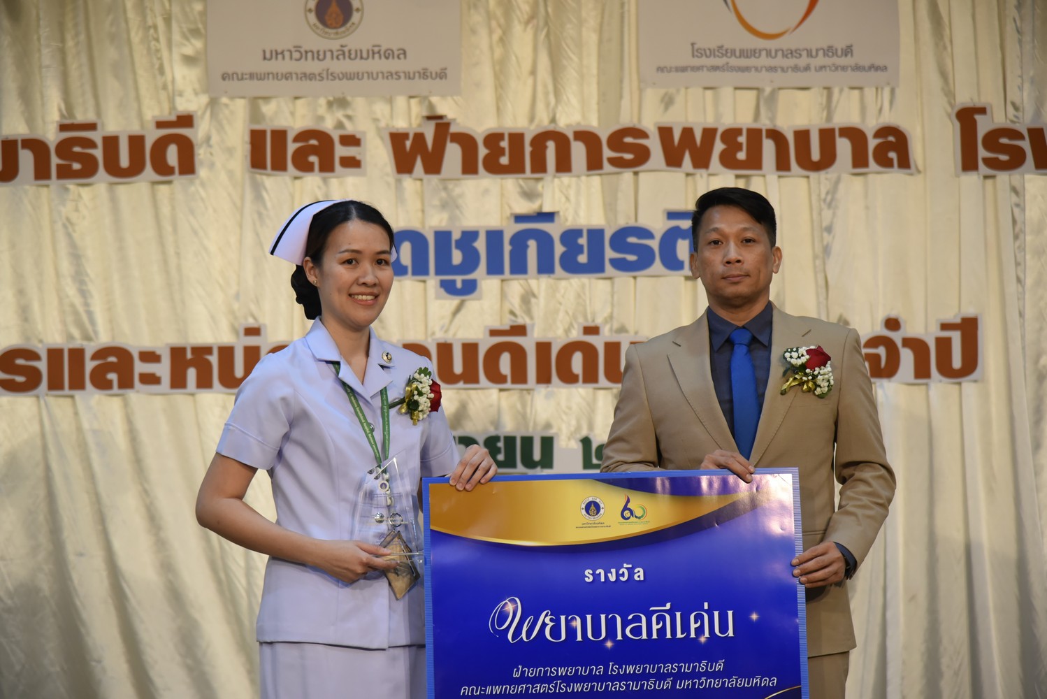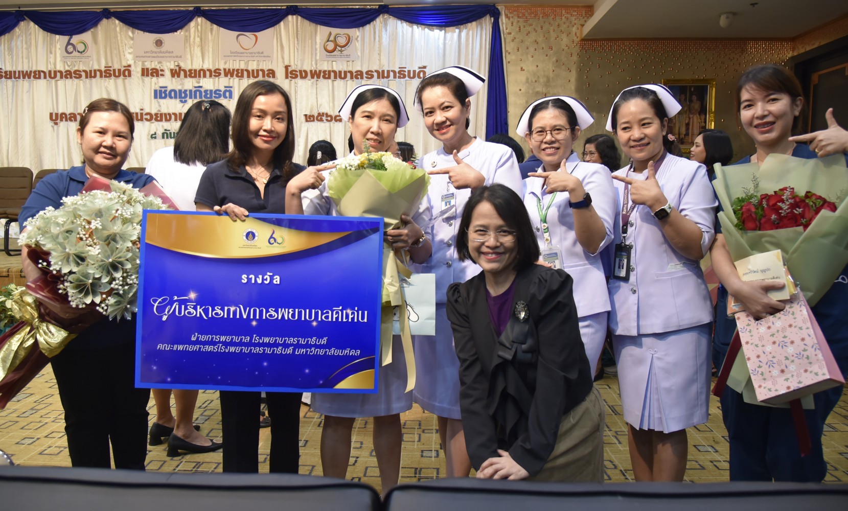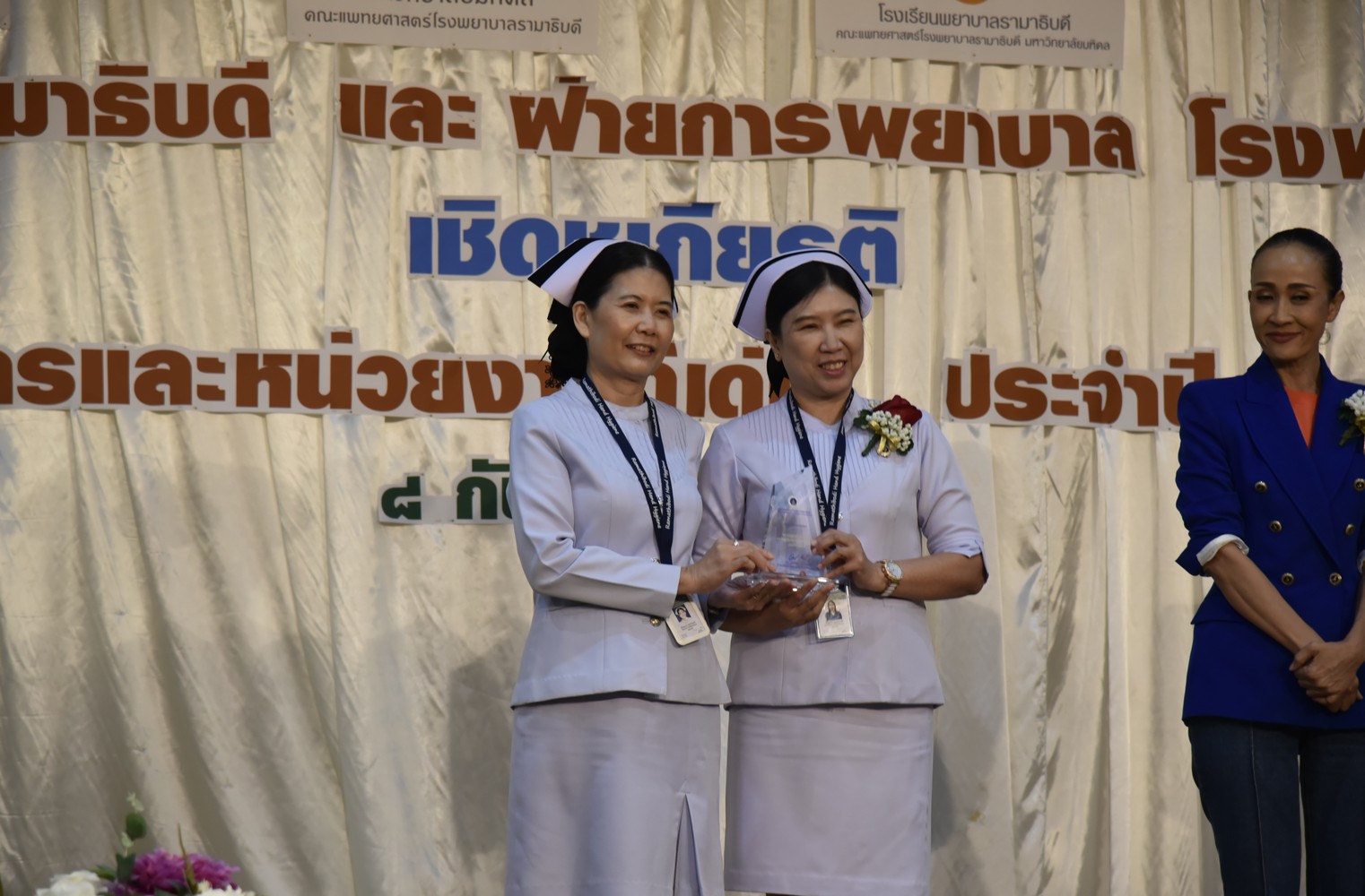 งานในปีนี้มีการมอบรางวัลอันทรงเกียรติรวม 9 รางวัล ทั้งจากโรงเรียนพยาบาลรามาธิบดี ได้แก่ รางวัลผู้บริหารดีเด่น อาจารย์พยาบาลดีเด่น และบุคลากรสายสนับสนุนดีเด่น ไปจนถึงรางวัลจากฝ่ายการพยาบาล ได้แก่ รางวัลหน่วยงานดีเด่น รางวัลผู้บริหารดีเด่น รางวัลพยาบาลดีเด่น และรางวัลบุคลากรสายสนับสนุนดีเด่น ทุกท่านที่ได้รับรางวัลล้วนเป็นผู้ที่มุ่งมั่นให้บริการด้วยมาตรฐานระดับสูง พัฒนางานอย่างต่อเนื่อง และยึดมั่นในคุณธรรม