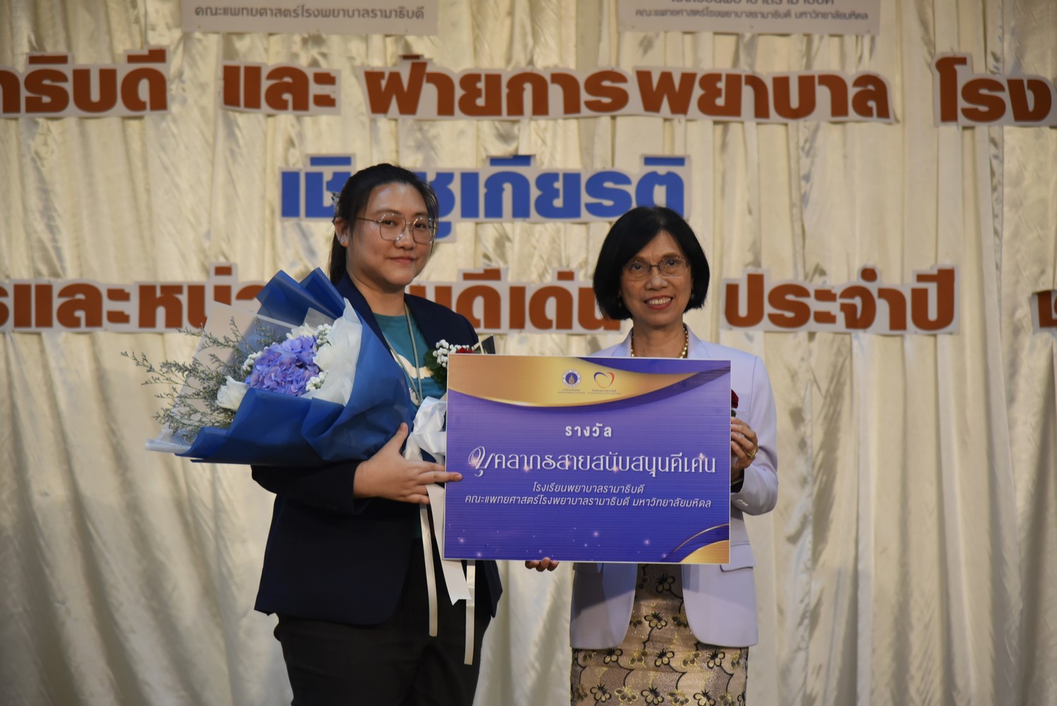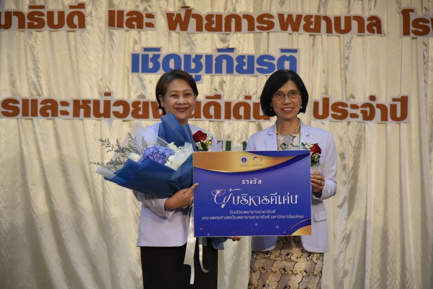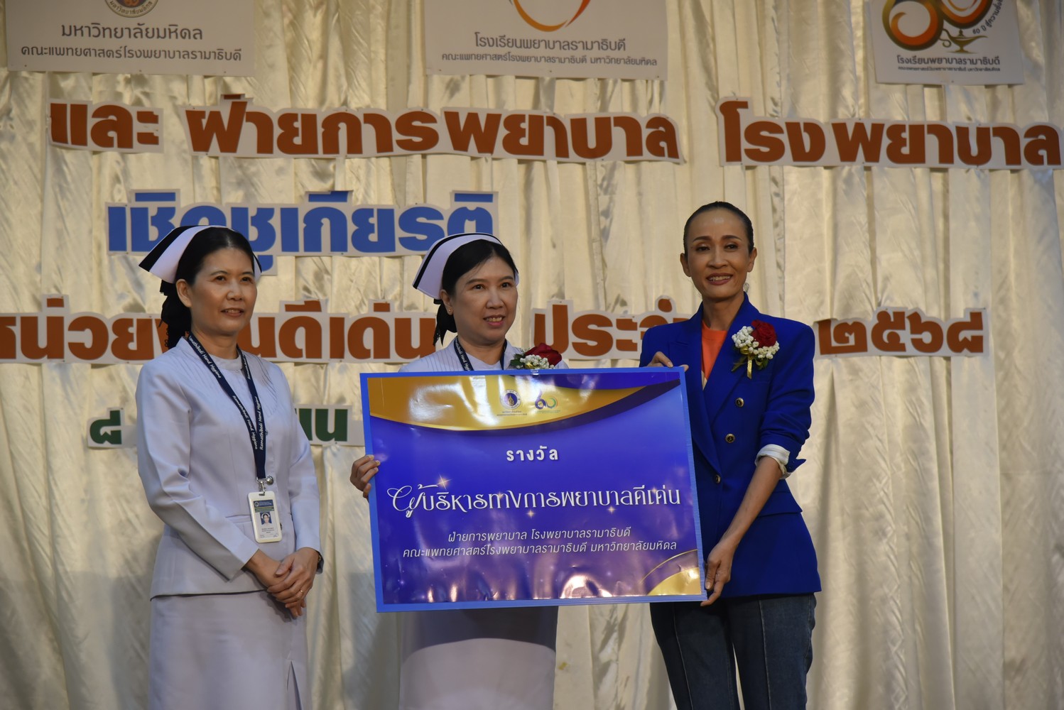งานในปีนี้มีการมอบรางวัลอันทรงเกียรติรวม 9 รางวัล ทั้งจากโรงเรียนพยาบาลรามาธิบดี ได้แก่ รางวัลผู้บริหารดีเด่น อาจารย์พยาบาลดีเด่น และบุคลากรสายสนับสนุนดีเด่น ไปจนถึงรางวัลจากฝ่ายการพยาบาล ได้แก่ รางวัลหน่วยงานดีเด่น รางวัลผู้บริหารดีเด่น รางวัลพยาบาลดีเด่น และรางวัลบุคลากรสายสนับสนุนดีเด่น ทุกท่านที่ได้รับรางวัลล้วนเป็นผู้ที่มุ่งมั่นให้บริการด้วยมาตรฐานระดับสูง พัฒนางานอย่างต่อเนื่อง และยึดมั่นในคุณธรรม