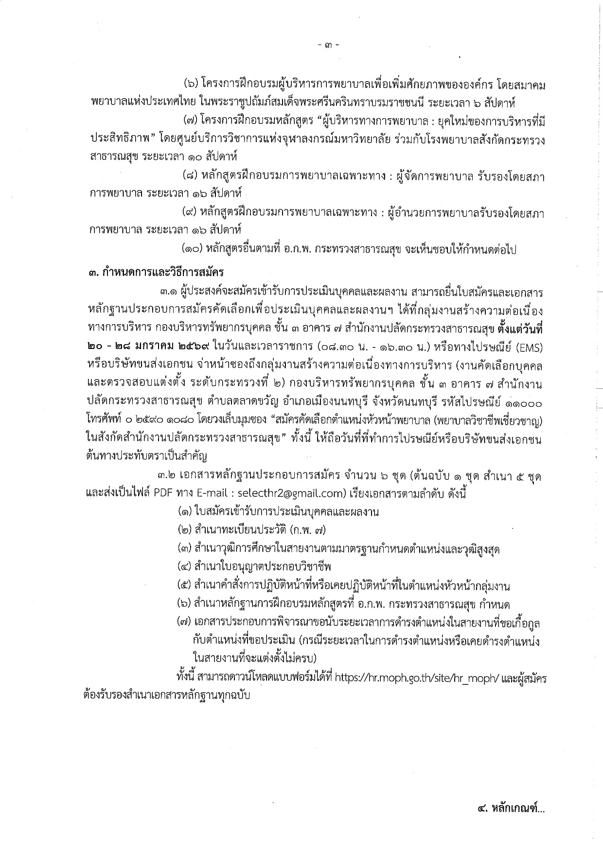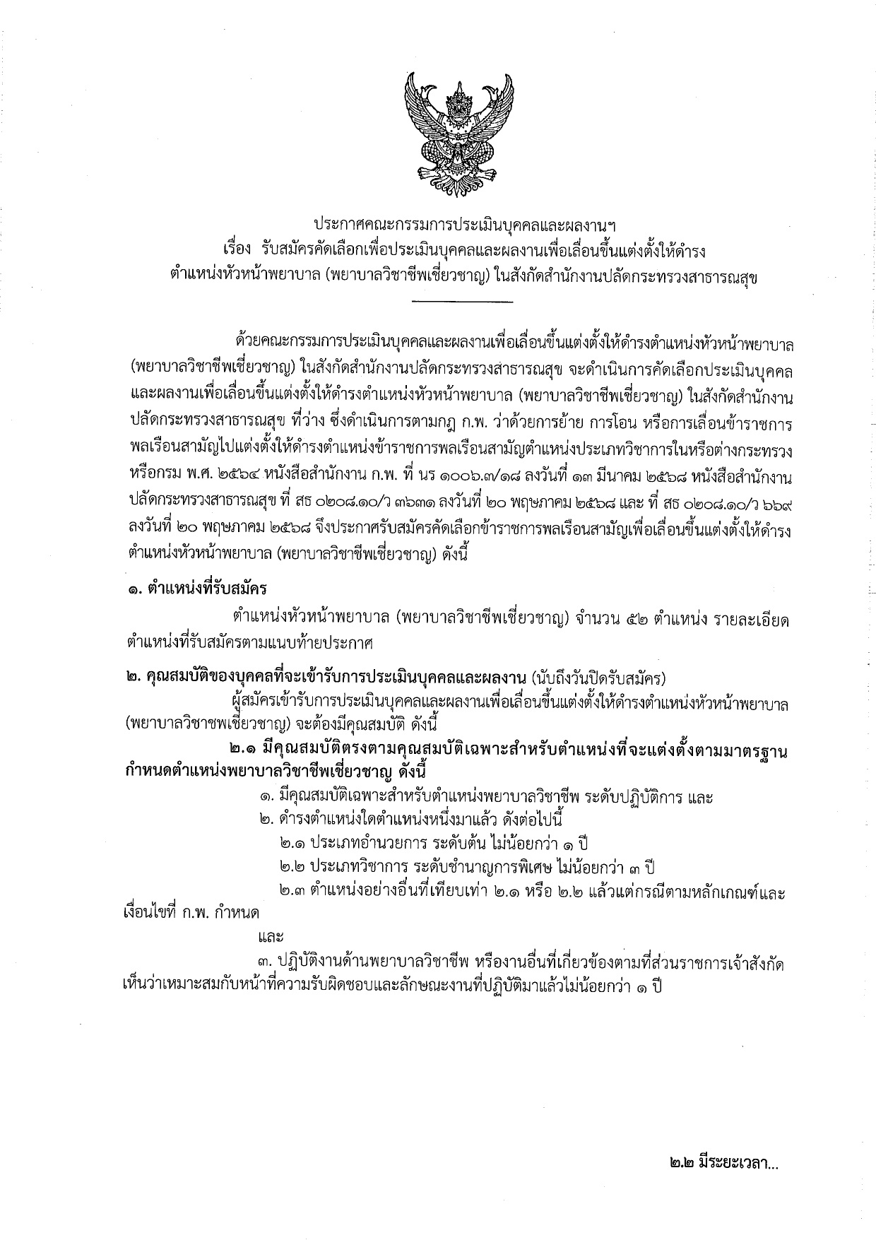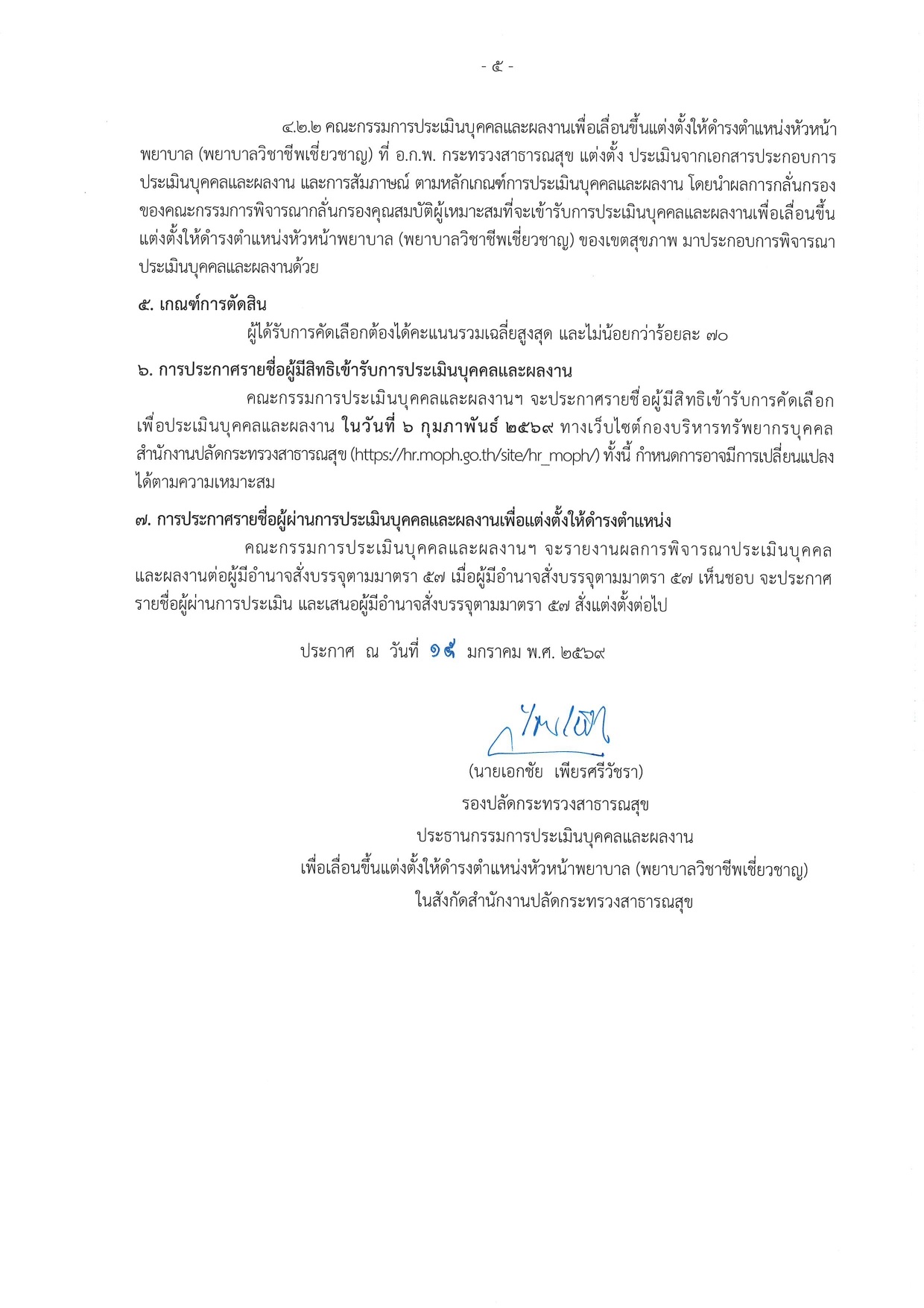 เมื่อวันที่ 15 มกราคม 2569 นพ.เอกชัย เพียรศรีวัชรา รองปลัดกระทรวงสาธารณสุข ปฏิบัติราชการแทนปลัดกระทรวงสาธารณสุข ได้ลงนามในหนังสือส่วนราชการ (ว 1075) เรื่องการรับสมัครคัดเลือกเพื่อประเมินบุคคลและผลงาน เพื่อแต่งตั้งให้ดำรงตำแหน่งหัวหน้าพยาบาล ในสังกัด สป.สธ. เพื่อขับเคลื่อนระบบบริการสุขภาพให้มีประสิทธิภาพและมั่นคง