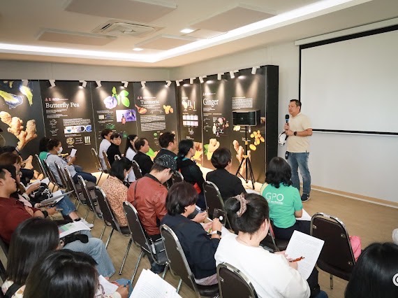 ภญ.วิลักษณ์ วังกานนท์ รองผู้อำนวยการองค์การเภสัชกรรม เปิดเผยว่า อภ. ได้มีการดำเนินงานโครงการ “PLANTXGPO” ภายใต้แนวคิด GPO PLANT BASED MEDICINE มุ่งเน้นการพัฒนาผลิตภัณฑ์สมุนไพรของอภ. และร่วมมือกับภาคส่วนต่างๆ ทั้งรัฐ เอกชน ในการที่จะเพิ่มมูลค่าสมุนไพรไทย เพิ่มขีดความสามารถในการแข่งขันกับนานาประเทศ รวมทั้งส่งเสริมให้มีงานนวัตกรรมด้านสมุนไพร อภ. ได้มีการวิจัยและพัฒนาเพื่อยกระดับผลิตภัณฑ์จากสมุนไพรไทยให้ตอบสนองความต้องการของผู้บริโภคในประเทศและตลาดต่างประเทศ โดย แบ่งผลิตภัณฑ์ออกเป็น 3 หมวด ประกอบด้วย 1. หมวดยาและผลิตภัณฑ์เสริมอาหารที่มีสารสำคัญจากพืชเป็นหลัก (Plant based drugs and supplements) เช่น ผลิตภัณฑ์ที่ใช้ด้านการกีฬา อาทิ สเปรย์สมุนไพรที่มีส่วนผสมของไพลสำหรับพ่นเพื่อคลายกล้ามเนื้อ และบรรเทาอาการปวดเมื่อยตามร่างกาย, ผลิตภัณฑ์สมุนไพรเสริมอาหารสารสกัดขมิ้นชันสูตรเสริมความแข็งแรงของกระดูกและข้อ (Ca-Curmin) , ผลิตภัณฑ์สมุนไพรบำรุงร่างกาย เป็นต้น 2. Plant based cosmetics ได้แก่ ผลิตภัณฑ์ Luminous botanic serum เป็นผลิตภัณฑ์บำรุงผิวที่ใช้สารสกัดจากสมุนไพรที่มีความสำคัญที่ช่วยบำรุงผิวและชะลอวัยจากธรรมชาตินานาชนิด อาทิ ขมิ้นชัน มะหาด ดอกโบตั๋น เกษรดอกบัวหลวง และใบบัวบก 3. Spa herbal products preparations ได้แก่ ผลิตภัณฑ์ลูกประคบ และน้ำมันหอมระเหย ภญ.วิลักษณ์ กล่าวต่อไปว่า จากการมาดูงานในครั้งนี้เกิดจากองค์การฯ ได้ร่วมกันกับมูลนิธิกสิกรไทย ในการพัฒนายาและผลิตภัณฑ์ส่งเสริมสุขภาพจากพืช โดยองค์การฯ จะร่วมกันส่งเสริมและสนับสนุน การวิจัย เพื่อการพัฒนายาและผลิตภัณฑ์ส่งเสริมสุขภาพจากพืชยา สนับสนุนข้อมูลด้าน วิชาการของพืชยา ตั้งแต่การปลูก การสกัด การควบคุมคุณภาพ การขึ้นทะเบียนเป็นยา หรือผลิตภัณฑ์ส่งเสริมสุขภาพ การผลิตเพื่อจำหน่ายในเชิงพาณิชย์ และการร่วมกันขับเคลื่อนและพัฒนาเศรษฐกิจและชุมชนอย่างยั่งยืน