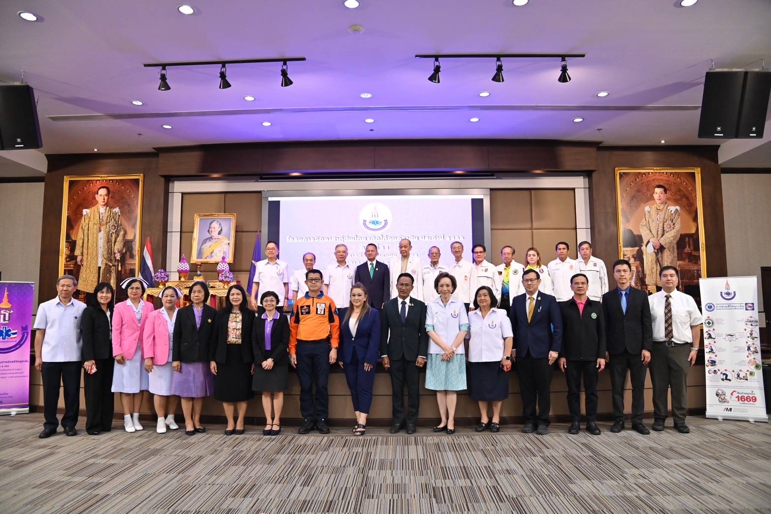 วันนี้ (11 ก.พ. 2568) นายสมศักดิ์ เทพสุทิน รัฐมนตรีว่าการกระทรวงสาธารณสุข เป็นประธานในพิธีมอบรางวัลโล่เกียรติยศ โครงการจิตอาสากู้ชีพไทยเทิดไท้องค์ราชัน ประจำปี พ.ศ. 2566-2567 ครั้งที่ 11 จัดโดยมูลนิธิการแพทย์ฉุกเฉินแห่งชาติ ในพระราชูปถัมภ์สมเด็จพระกนิษฐาธิราชเจ้า กรมสมเด็จพระเทพรัตนราชสุดาฯ สยามบรมราชกุมารี โดยมี นพ.พรเทพ ศิริวนารังสรรค์ ประธานกรรมการมูลนิธิการแพทย์ฉุกเฉินแห่งชาติ ในพระราชูปถัมภ์ฯ พร้อมด้วยบุคลากรสาธารณสุข นักเรียน และจิตอาสา เข้าร่วมพิธี นายสมศักดิ์ กล่าวว่า เจ้าหน้าที่กู้ชีพ กู้ภัย และจิตอาสา มีความสำคัญอย่างยิ่งในระบบการแพทย์ฉุกเฉิน ทำให้สามารถนำส่งผู้ป่วยไปรับการรักษาที่โรงพยาบาลได้อย่างทันท่วงที ช่วยลดความเสี่ยงที่จะเกิดความพิการและเสียชีวิต การมอบรางวัลโล่เกียรติยศครั้งนี้ ถือเป็นเป็นขวัญกำลังใจและเป็นการเชิดชูเกียรติในความทุ่มเทเสียสละเพื่อส่วนรวม โดยกิจกรรมในวันนี้ มีการสาธิตการอบรมการช่วยฟื้นคืนชีพขั้นพื้นฐาน (CPR) และการใช้เครื่องฟื้นคืนคลื่นหัวใจด้วยไฟฟ้าแบบอัตโนมัติ (AED) ซึ่งจะทำให้ประชาชนมีความรู้ ความเข้าใจในการช่วยกู้ชีพเบื้องต้น สามารถใช้เครื่อง AED ช่วยเหลือผู้ที่ภาวะหัวใจหยุดเฉียบพลับได้อย่างปลอดภัยและทันท่วงทีก่อนนำส่งโรงพยาบาล