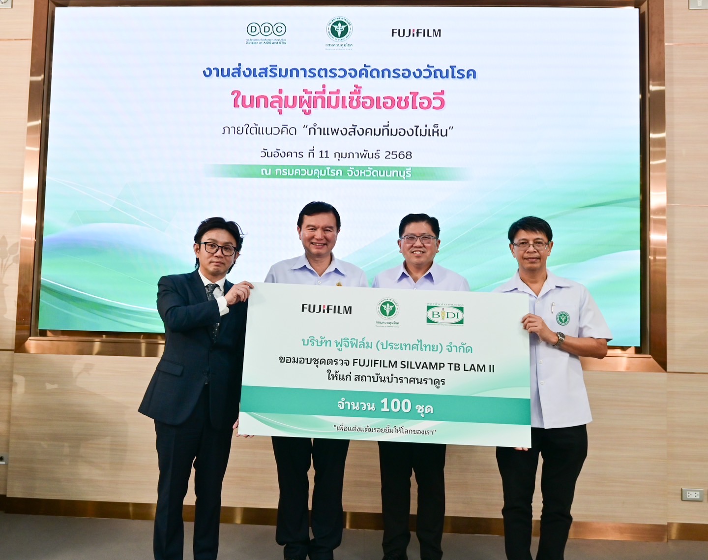 วันนี้ (11 กุมภาพันธ์ 2568) ณ ห้องประชุมประเมิน จันทวิมล กรมควบคุมโรค กระทรวงสาธารณสุขนายแพทย์ภาณุมาศ ญาณเวทย์สกุล อธิบดีกรมควบคุมโรค พร้อมด้วย นายแพทย์นิติ เหตานุรักษ์ รองอธิบดีกรมควบคุมโรค แพทย์หญิงผลิน กมลวัทน์ นายแพทย์ทรงคุณวุฒิ กรมควบคุมโรค และผู้อำนวยการสำนักงานบริหารโครงการกองทุนโลก คณะผู้บริหารกรมควบคุมโรค และนายโซ มารูโอะ กรรมการผู้จัดการบริษัท ฟูจิฟิล์ม (ประเทศไทย) จำกัด ร่วมเปิดงานส่งเสริมการตรวจคัดกรองวัณโรคในกลุ่มผู้ที่มีเชื้อเอชไอวี ภายใต้แนวคิด “กำแพงสังคมที่มองไม่เห็น” เพื่อสนับสนุนและส่งเสริมการตรวจคัดกรองวัณโรคเชิงรุกในผู้ที่มีเชื้อเอชไอวีด้วยชุดตรวจ TB Urine LAM สำหรับหาแอนติเจนของเชื้อวัณโรคในเชิงรุกในผู้ที่มีเชื้อเอชไอวีด้วยชุดตรวจ TB Urine LAM สำหรับหาแอนติเจนของเชื้อวัณโรคในปัสสาวะ