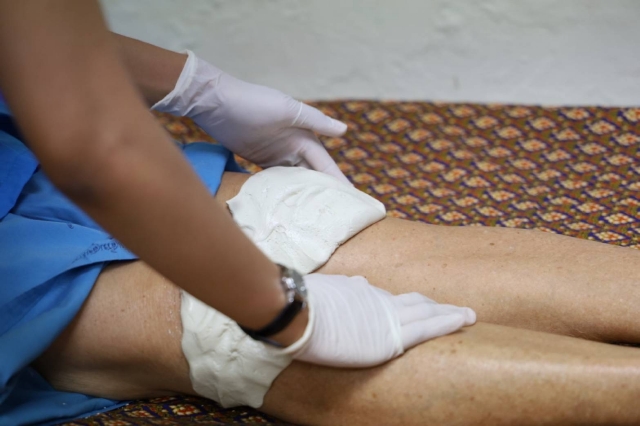 2. การรักษาอาการปวดเรื้อรังและนอนไม่หลับด้วยการแพทย์แผนไทยและการแพทย์ผสมผสานแบบไม่ใช้ยา เช่น การนวดรักษา ประคบสมุนไพร การพอกยาสมุนไพร การแช่สมุนไพร การกักน้ำมัน การอบสมุนไพร การฝังเข็มโดยแพทย์แผนจีน และ การใช้หลักธรรมานามัย เป็นต้น