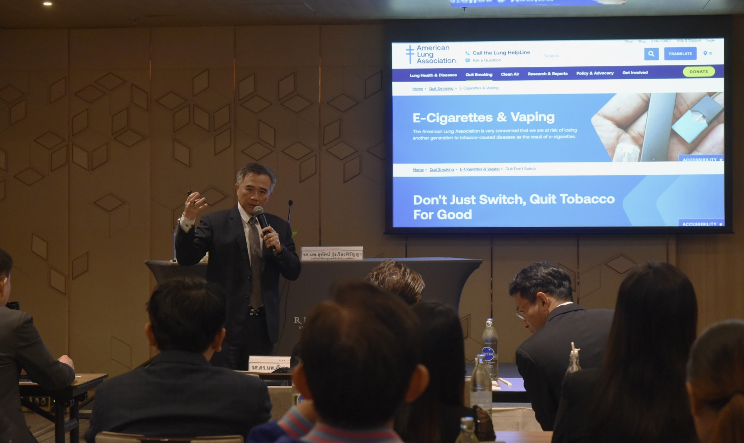 รศ.นพ.สุทัศน์ รุ่งเรืองหิรัญญา ผู้แทนราชวิทยาลยอายุรแพทย์แหงประเทศไทย กล่าวว่า บุหรี่ ไฟฟ้าและบุหรี่ไฟฟ้าแบบให้ความร้อน (Heated Tobacco Products : HTPs) ไม่ได้เป็นสารที่ลดอันตราย (Harm Reduction) เพราะมีรายงานทางการแพทย์ออกมาอย่างมากมายต่อเนื่องระบุว่าบุหรี่ไฟฟ้าทำให้เกิดการเสพติดได้ง่ายและในระดับที่รุนแรงกว่าที่เกิดจากการสูบบุหรี่มวน ทั้งนี้กว่าร้อยละ 90 ของนิโคตินในนำ้ยาบุหรี่ไฟฟ้าเป็นนิโคตินสังเคราะห์ที่สามารถดูดซึมเข้าสู่สมองได้ในปริมาณมากและเร็วกว่านิโคตินธรรมชาติ และสามารถเติมในน้ำยาสูงได้ถึง 100 เท่าของบุหรี่มวน นอกจากนี้ยังมีสารปรุงแต่งกลิ่น รส ที่หลากหลายมากมายเพื่อกลบเกลื่อน ผลกระทบที่แท้จริงต่อสุขภาพและเพื่อหลอกล่อเด็กและเยาวชนให้มาทดลองสูบ จนเกิดการเสพติดอย่างต่อเนื่องและเลิกได้ยาก