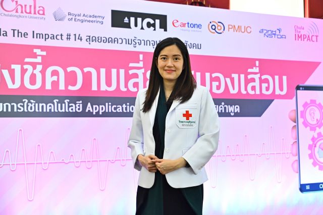 แอปพลิเคชัน EarTest by Eartone (ฉบับภาษาไทย) ถือเป็นนวัตกรรมใหม่ล่าสุดที่ อ.ดร.พญ.นัตวรรณ อุทุมพฤกษ์พร แพทย์ผู้เชี่ยวชาญด้านการได้ยิน โรงพยาบาลจุฬาลงกรณ์ สภากาชาดไทย ร่วมกับ ผศ.ดร.ยุทธนา รุ่งธรรมสกุล อาจารย์ผู้เชี่ยวชาญด้านฟิสิกส์ การได้ยินคณะวิทยาศาสตร์ จุฬาลงกรณมหาวิทยาลัย เป็นผู้คิดค้น วิจัยและพัฒนาแอปพลิเคชัน Eartest by Eartone ซึ่งได้เปิดตัวอย่างเป็นทางการ ให้ประชาชนที่มีความเสี่ยงจากปัญหาการได้ยิน สามารถตรวจคัดกรองได้ด้วยตนเองที่บ้าน ฟรี ผ่านเสียงพูดในอุปกรณ์มือถือหรือแท็บเล็ตที่เชื่อมต่อกับหูฟัง เพื่อประเมินความเสี่ยงที่อาจทำให้เกิดปัญหาสมองเสื่อมในอนาคตได้อย่างทันท่วงที อ.ดร.พญ.นัตวรรณ อุทุมพฤกษ์พร กล่าวในงานเสวนา Chula the Impact ครั้งที่ 14 ว่า “แอปพลิเคชัน EarTest by Eartone เกิดจากโครงการวิจัย Thai Speech Acoustic Virtual Reality Test for the Detection of Early Dementia ที่ได้รับความร่วมมือจากหลายภาคส่วนที่เกี่ยวข้อง ทั้งจากประเทศอังกฤษ โดยมีความร่วมมือกับราชวิทยาลัยวิศวกรรม The Royal Academy of Engineering ภายใต้ทุน Transforming System through Partnership ผ่านโครงการ Newton Fund ทำให้ได้รับการถ่ายทอดองค์ความรู้ จากผู้เชี่ยวชาญจาก University College of London (UCL) ร่วมกับผู้ร่วมทุนภาคเอกชน นอกจากนี้ได้รับการสนับสนุนเพิ่มเติมจาก British Council และกระทรวงอว. ผ่านโครงการ Thai-UK world class university consortium ที่ช่วยสนับสนุนกิจกรรมถ่ายทอดองค์ความรู้ จากมหาวิทยาลัยในอังกฤษจุดเริ่มต้นโครงการร่วมทุนพัฒนาต่อยอดแอปพลิเคชัน EarTest by Eartone นี้ จากเทคโนโลยีเดิม ผ่านการพัฒนาอย่างต่อเนื่องเป็นเวลาหลายปี ซึ่งการที่เราจะพัฒนาการตรวจลักษณะนี้ได้ ต้องใช้ทั้งองค์ความรู้และเทคโนโลยีที่จะต้องมีความร่วมมือกับทางต่างประเทศด้วย ซึ่งทางทีมโชคดีมากที่ได้ร่วมมือกับทาง University College London โดยร่วมมือกับ Professor Stuart Rosen ผู้ที่พัฒนาการตรวจการได้ยินในภาษาต่าง ๆ เกือบทั่วโลก โดยเริ่มจากการเก็บรวบรวม ความคิดเห็นและความต้องการของผู้สูงอายุ ซึ่งจะเป็นผู้ใช้จริงมากกว่า 100 คน จากนั้นจึงนำมาออกแบบให้ตอบโจทย์การใช้งานมากที่สุด