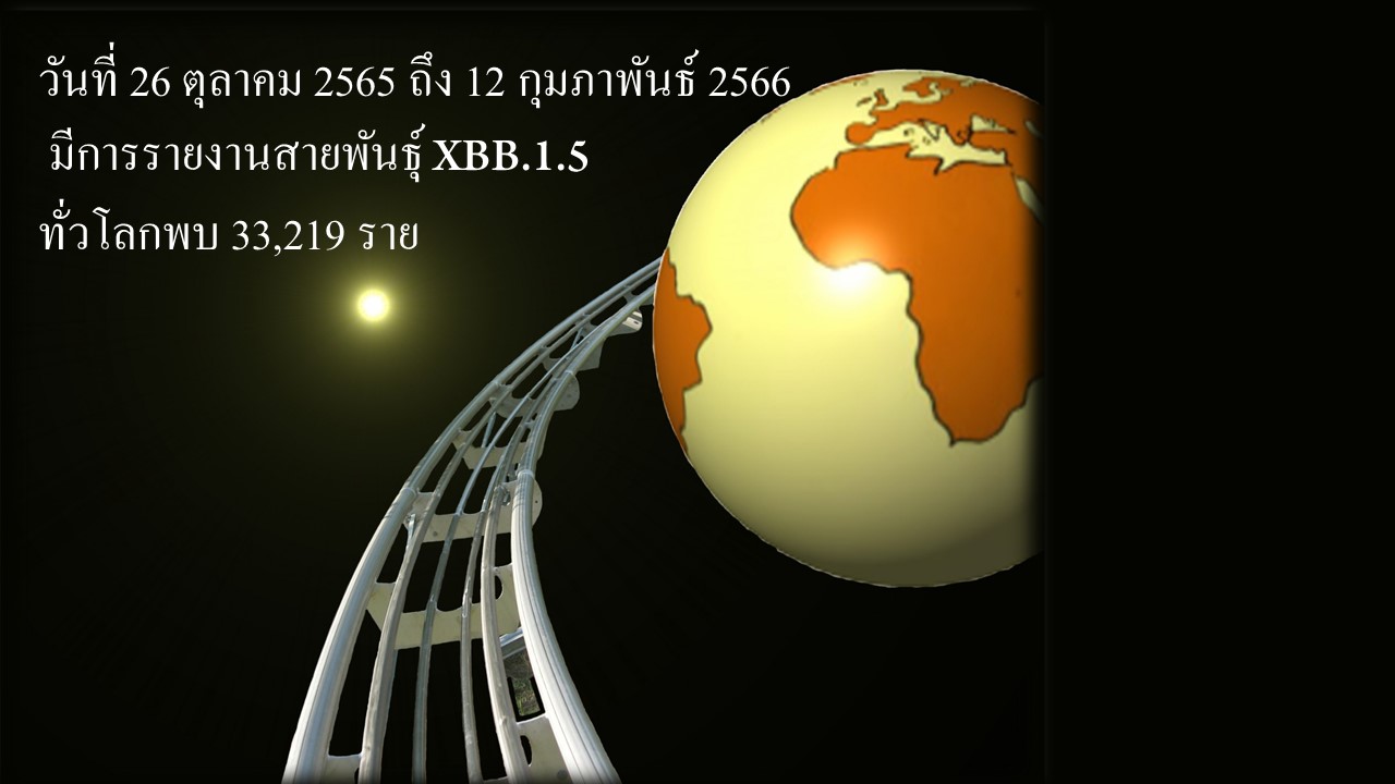 วันนี้ (15 กุมภาพันธ์ 2566) นายแพทย์ศุภกิจ ศิริลักษณ์ อธิบดีกรมวิทยาศาสตร์การแพทย์ เปิดเผยว่า จากการ เฝ้าระวังสายพันธุ์โควิด 19 ในประเทศไทย ขณะนี้กรมวิทยาศาสตร์การแพทย์ร่วมกับเครือข่าย ตรวจพบสายพันธุ์ XBB.1.5 จำนวน 2 ราย ในไทย เป็นชาวไทย 1 ราย และต่างชาติ 1 ราย ปัจจุบันหายดีแล้ว และยังไม่พบผู้ใกล้ชิดติดเชื้อ ซึ่งกรมได้ส่งข้อมูลเผยแพร่ไปยังฐานข้อมูล GISAID แล้ว XBB.1.5 เป็นเชื้อสายสืบสกุลของ XBB ซึ่งเป็นลูกผสมของโอมิครอนสายพันธุ์ย่อย BA.2 สองสายพันธุ์ ได้แก่ สายพันธุ์ BJ.1 และ BM.1.1.1 จากข้อมูลตั้งแต่วันที่ 26 ตุลาคม 2565 ถึง 12 กุมภาพันธ์ 2566 มีการรายงานสายพันธุ์ XBB.1.5 ทั่วโลกพบ 33,219 ราย ส่วนใหญ่พบในสหรัฐอเมริกา 24,505 ราย (73.7%) ส่วนประเทศอื่นๆ เช่น สหราชอาณาจักร (6.6%) แคนาดา (5.3%) เดนมาร์ก (1.0%) เยอรมนี (2.65%) ไอร์แลนด์ (1.0%) และออสเตรีย (1.5%)
