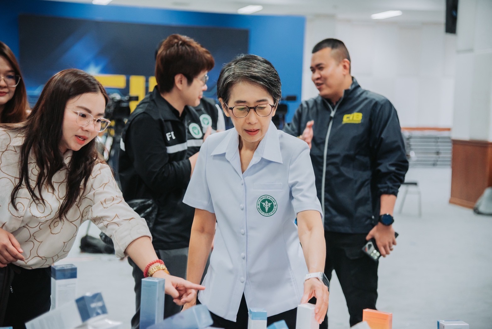 นพ.รุ่งฤทัย มวลประสิทธิ์พร รองเลขาธิการคณะกรรมการอาหารและยา กล่าวว่า ปฏิบัติการในครั้งนี้ สำนักงานคณะกรรมการอาหารและยา (อย.) ขอขอบคุณตำรวจกองบังคับการปราบปรามการกระทำความผิดเกี่ยวกับการคุ้มครองผู้บริโภค (บก.ปคบ.) ที่สืบสวน ขยายผล จากการตรวจสอบแหล่งลักลอบขายวัตถุอันตรายที่ใช้ในบ้านเรือน ที่ไม่จดแจ้งข้อเท็จจริง ไม่ได้ขึ้นทะเบียน และไม่แสดงฉลากภาษาไทย และเครื่องสำอาง ไม่จดแจ้ง ไม่แสดงฉลากภาษาไทย ซึ่งพบของกลางเป็นจำนวนมาก