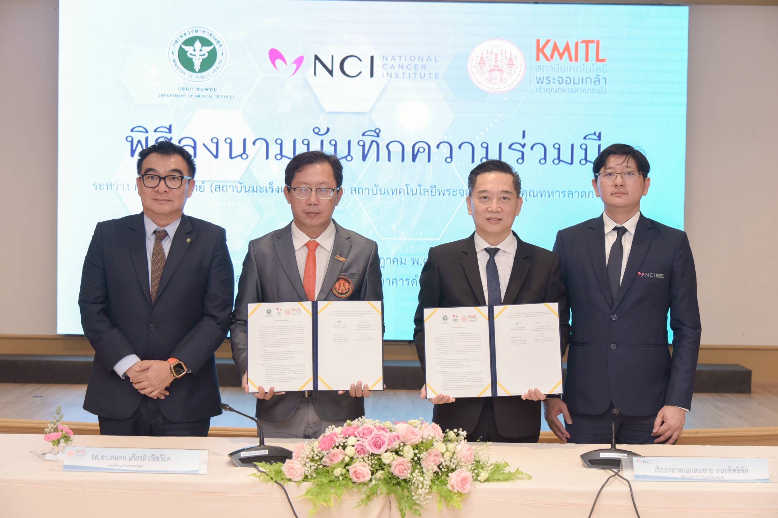 สถาบันมะเร็งแห่งชาติกรมการแพทย์ ร่วมกับคณะวิศวกรรมศาสตร์ สถาบันเทคโนโลยีพระจอมเกล้าเจ้าคุณทหารลาดกระบัง (KMITL) จัดพิธีลงนามบันทึกความร่วมมือทางวิชาการ โดยมีเป้าหมายในการบูรณาการองค์ความรู้ด้านการแพทย์และวิศวกรรม เพื่อพัฒนาเทคโนโลยีและนวัตกรรมที่ตอบโจทย์ระบบสาธารณสุขไทย โดยเฉพาะอย่างยิ่งในการตรวจคัดกรองและวินิจฉัยโรคมะเร็งอย่างมีประสิทธิภาพ