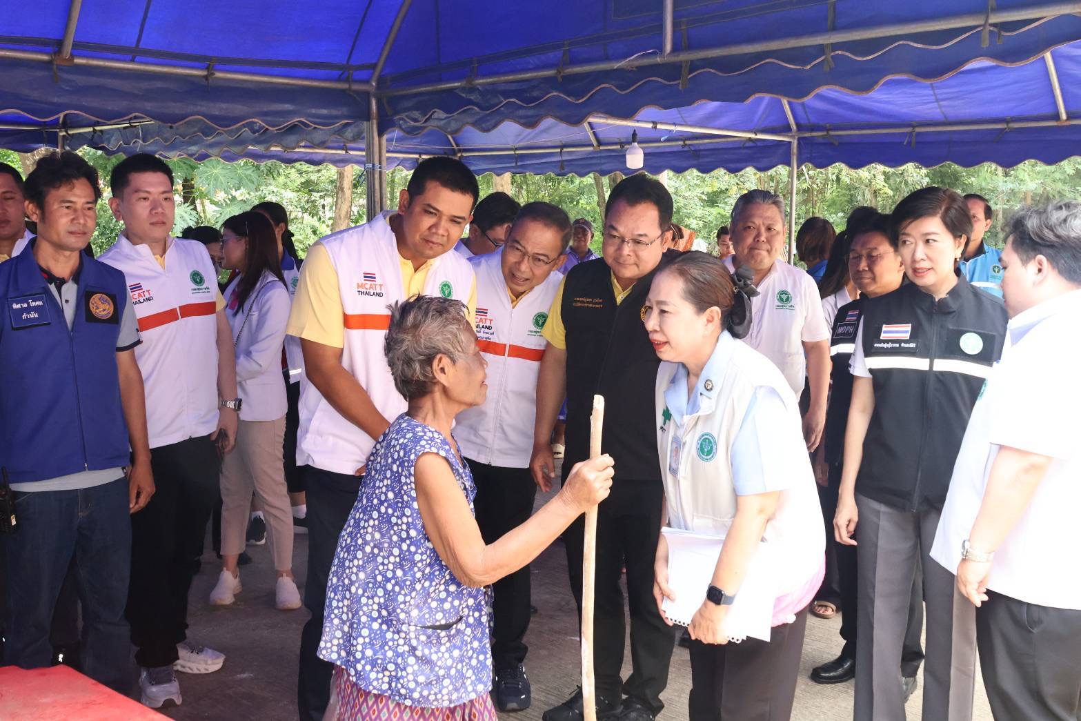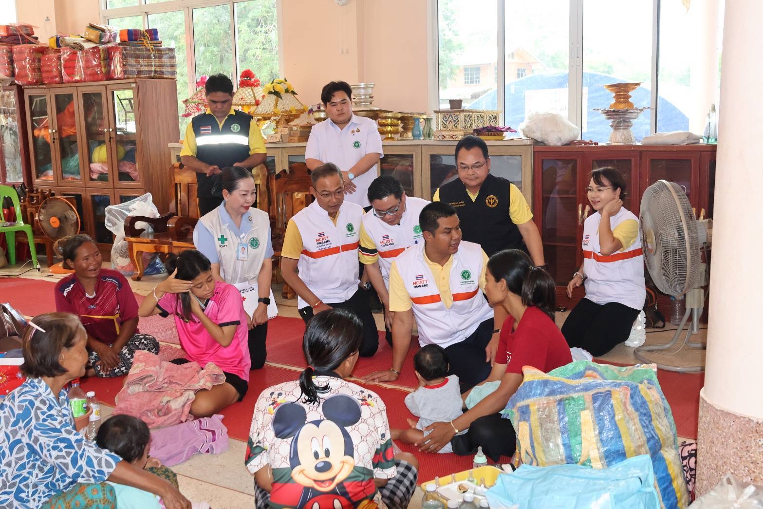 ต่อมา คณะผู้บริหารได้ลงพื้นที่ ตรวจเยี่ยมศูนย์พักพิงชั่วคราววัดสระเยาว์ อำเภอศรีรัตนะ จังหวัดศรีสะเกษ ซึ่งมีผู้อพยพเข้าพัก 548 คน และได้เดินทางไปยัง อำเภอเดชอุดม จังหวัดอุบลราชธานี เพื่อตรวจเยี่ยม 2 ศูนย์พักพิง ได้แก่ ศูนย์พักพิงชั่วคราวที่ว่าการอำเภอเดชอุดม มีผู้ป่วย 44 คน และญาติ 70 คน รวม 114 คน ศูนย์พักพิงชั่วคราวโรงเรียนบ้านแขมเจริญ มีผู้ป่วย 50 คน และญาติ 110 คน รวม 160 คน โดยมีการประเมินผู้ป่วยที่ต้องการการดูแลอย่างใกล้ชิด ได้แก่ ผู้ป่วยติดเตียง 55 ราย ผู้ป่วยล้างไต 42 ราย (HD 37 ราย และ NO RRT 5 ราย) หญิงตั้งครรภ์ 2 ราย และผู้สูงอายุที่ต้องการความช่วยเหลือ 21 ราย