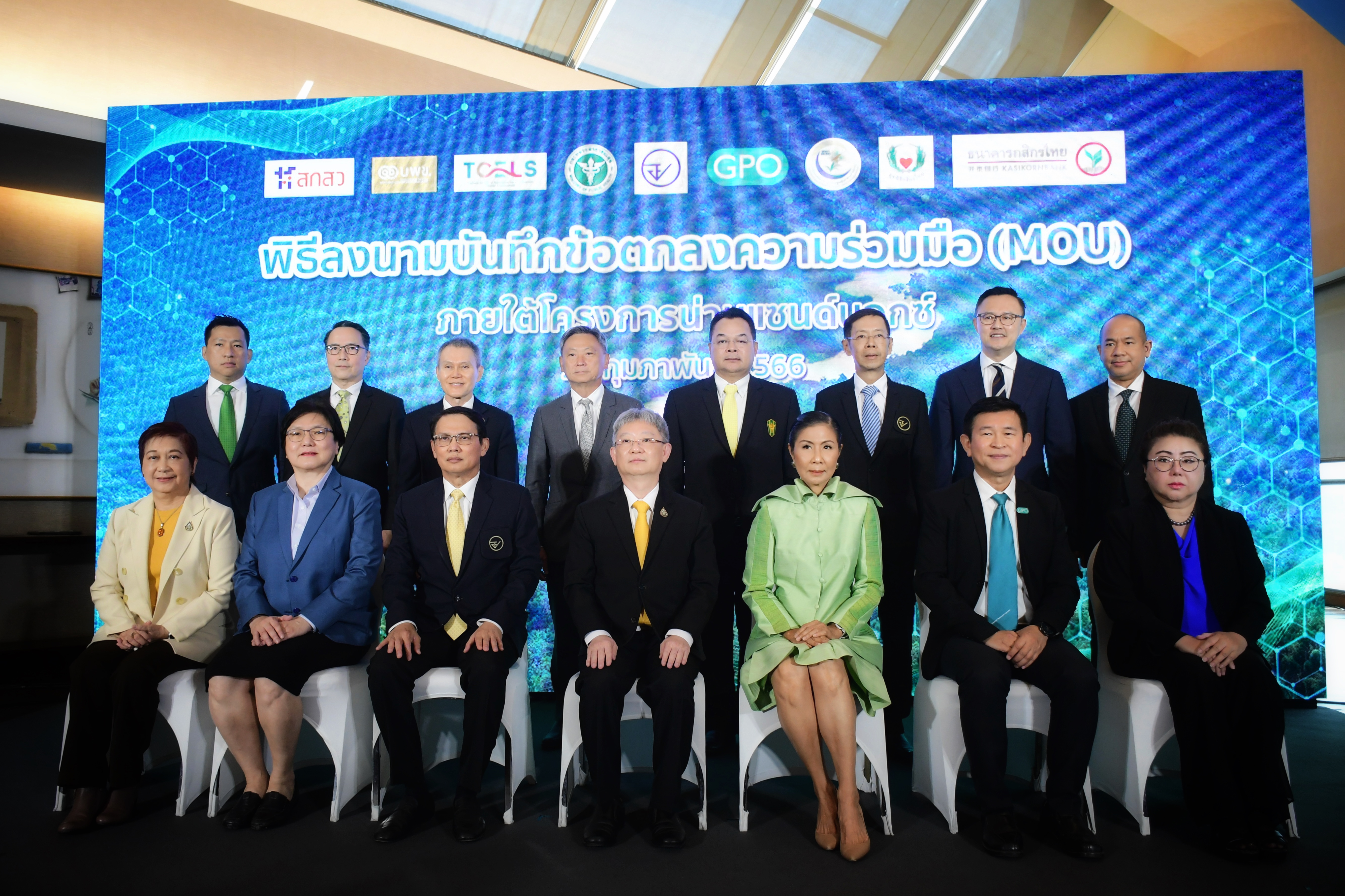 วันนี้ (20 กุมภาพันธ์ 2566) ที่ ธนาคารกสิกรไทย อาคารราษฎร์บูรณะ กทม. นายแพทย์โอภาส การย์กวินพงศ์ ปลัดกระทรวงสาธารณสุข ร่วมเป็นเกียรติในพิธีลงนามบันทึกความร่วมมือ 3 ฉบับ 6 หน่วยงาน เพื่อสนับสนุนโครงการน่านแซนด์บอกซ์ ได้แก่ บันทึกความเข้าใจเพื่อความร่วมมือในการพัฒนายาและผลิตภัณฑ์ส่งเสริมสุขภาพจากพืช ระหว่างมูลนิธิกสิกรไทย สำนักงานคณะกรรมการอาหารและยา (อย.) หน่วยบริหารและจัดการทุนด้านการเพิ่มความสามารถในการแข่งขันของประเทศ (บพข.) และศูนย์ความเป็นเลิศด้านชีววิทยาศาสตร์ (ศลช.),บันทึกข้อตกลงความร่วมมือโครงการร่วมพัฒนายาและผลิตภัณฑ์ส่งเสริมสุขภาพจากพืช ระหว่างมูลนิธิกสิกรไทย กับองค์การเภสัชกรรม (อภ.) และ บันทึกข้อตกลงความร่วมมือในการส่งเสริมการใช้ประโยชน์ฐานข้อมูลเพื่อการพัฒนางานวิจัยและนวัตกรรม ในการผลิตยาและผลิตภัณฑ์ส่งเสริมสุขภาพจากพืชยา ระหว่างมูลนิธิกสิกรไทยกับ สำนักงานพัฒนาเศรษฐกิจจากฐานชีวภาพ (สพภ.)