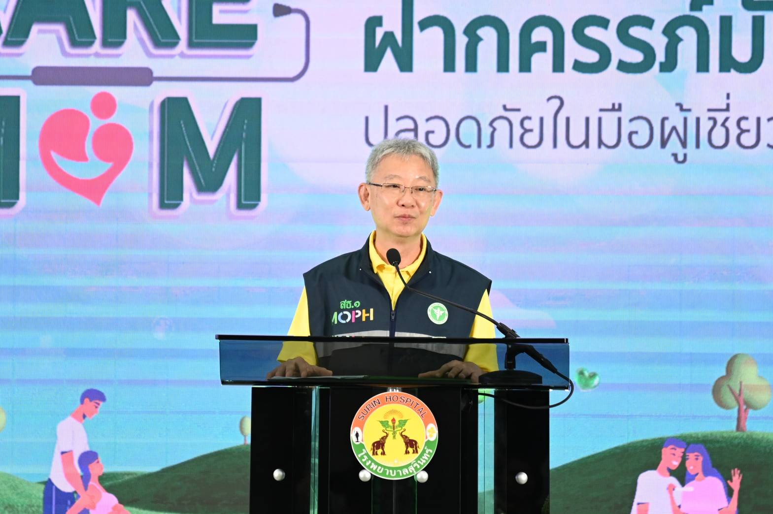 วันที่ 9 ก.ย. 2568) ณ ห้องประชุมกุญชรศุภศรี ชั้น 9 อาคาร 100 ปี การสาธารณสุขไทย โรงพยาบาลสุรินทร์ จ.สุรินทร์ นพ.โอภาส การย์กวินพงศ์ ปลัดกระทรวงสาธารณสุข เป็นประธานในพิธีเปิดกิจกรรม Kick off “โครงการ Care Mom: ฝากครรภ์มั่นใจ ปลอดภัยในมือผู้เชี่ยวชาญ” โดยมีผู้บริหารระดับสูง พร้อมด้วยบุคลากรสาธารณสุข เข้าร่วม โดยกล่าวว่า การตั้งครรภ์และการคลอด ถือเป็นช่วงเวลาที่สำคัญที่สุดของชีวิต และเป็นรากฐานของการสร้างพลเมืองคุณภาพให้แก่ประเทศ กระทรวงสาธารณสุขจึงมุ่งพัฒนาระบบบริการสุขภาพแม่และเด็กอย่างต่อเนื่อง เนื่อง โดยโครงการนี้เป็นความร่วมมือของ Service Plan สูตินรีเวชกรรม และสำนักสุขภาพดิจิทัล ในการนำนวัตกรรมสมุดฝากครรภ์ดิจิทัลมาใช้ในการดูแลหญิงตั้งครรภ์ ช่วยให้หญิงตั้งครรภ์ทุกคนได้รับการดูแลอย่างปลอดภัยและต่อเนื่องจากทีมผู้เชี่ยวชาญ ตั้งแต่ก่อนคลอดจนถึงหลังคลอด และเด็กแรกเกิด ทั้งการฝากครรภ์คุณภาพ การคัดกรองดาวน์ซินโดรมด้วยการตรวจ NIPT test การป้องกันการคลอดก่อนกำหนด แจ้งเตือนนัดหมายฝากครรภ์/ฉีดวัคซีน และให้คำแนะนำต่างๆ