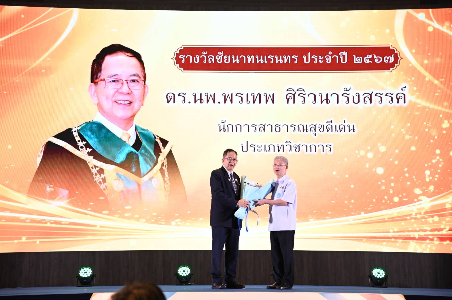 3) ประเภทวิชาการ ดร. นายแพทย์พรเทพ ศิริวนารังสรรค์ นายกสมาคมเวชศาสตร์ป้องกันแห่งประเทศไทย ได้ร่วมพัฒนาหลักสูตรด้านสาธารณสุข อาทิ สุขภาพจิตชุมชน เวชศาสตร์ทางทะเล เวชศาสตร์การเดินทางและท่องเที่ยว เวชศาสตร์การจราจร เวชศาสตร์วิถีชีวิต สร้างองค์ความรู้ใหม่ให้แก่ผู้นำด้านสาธารณสุข และจัดทำเกณฑ์การประเมินโรงพยาบาลส่งเสริมสุขภาพ ช่วยยกระดับมาตรฐานการบริการและสุขภาพของประชาชน