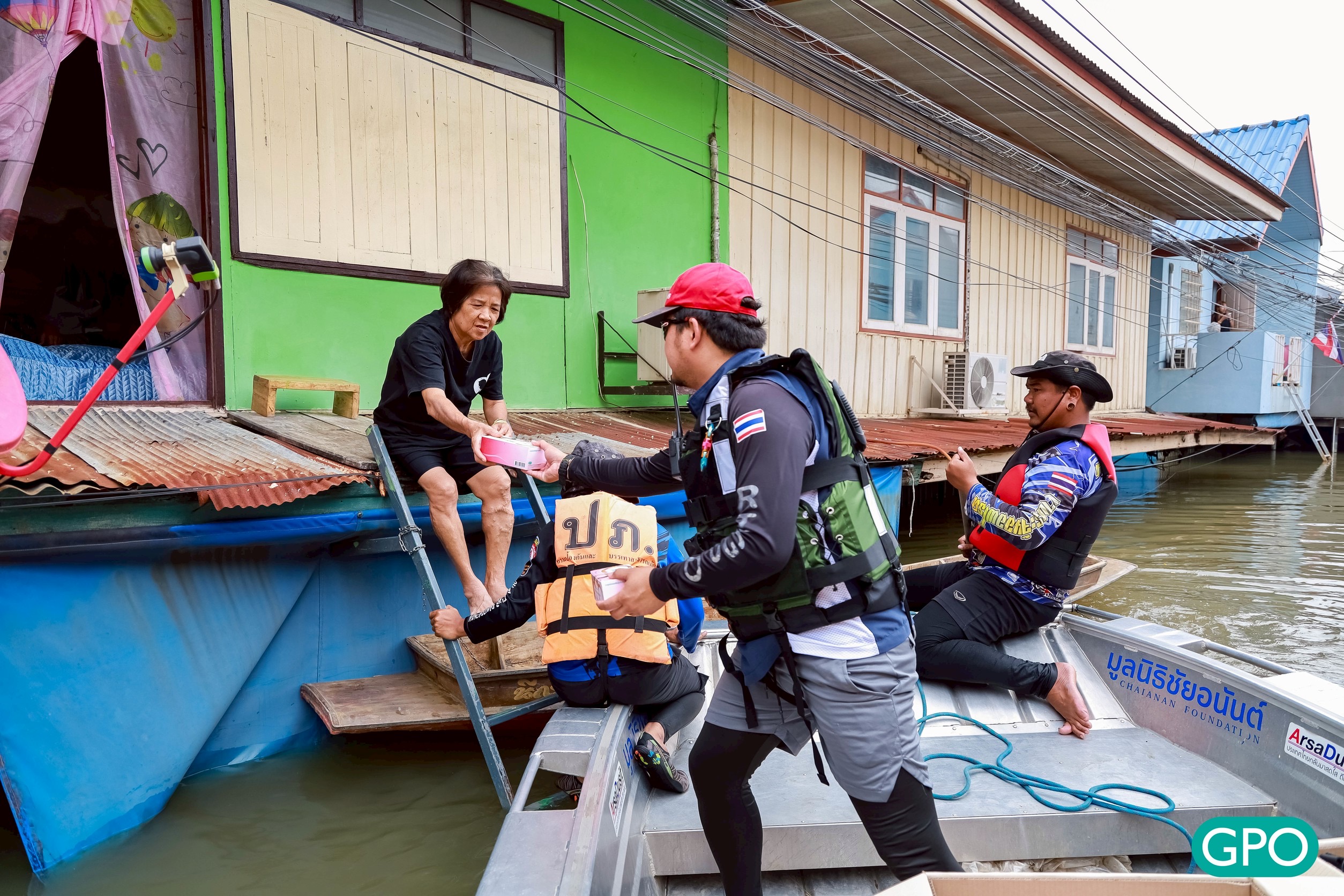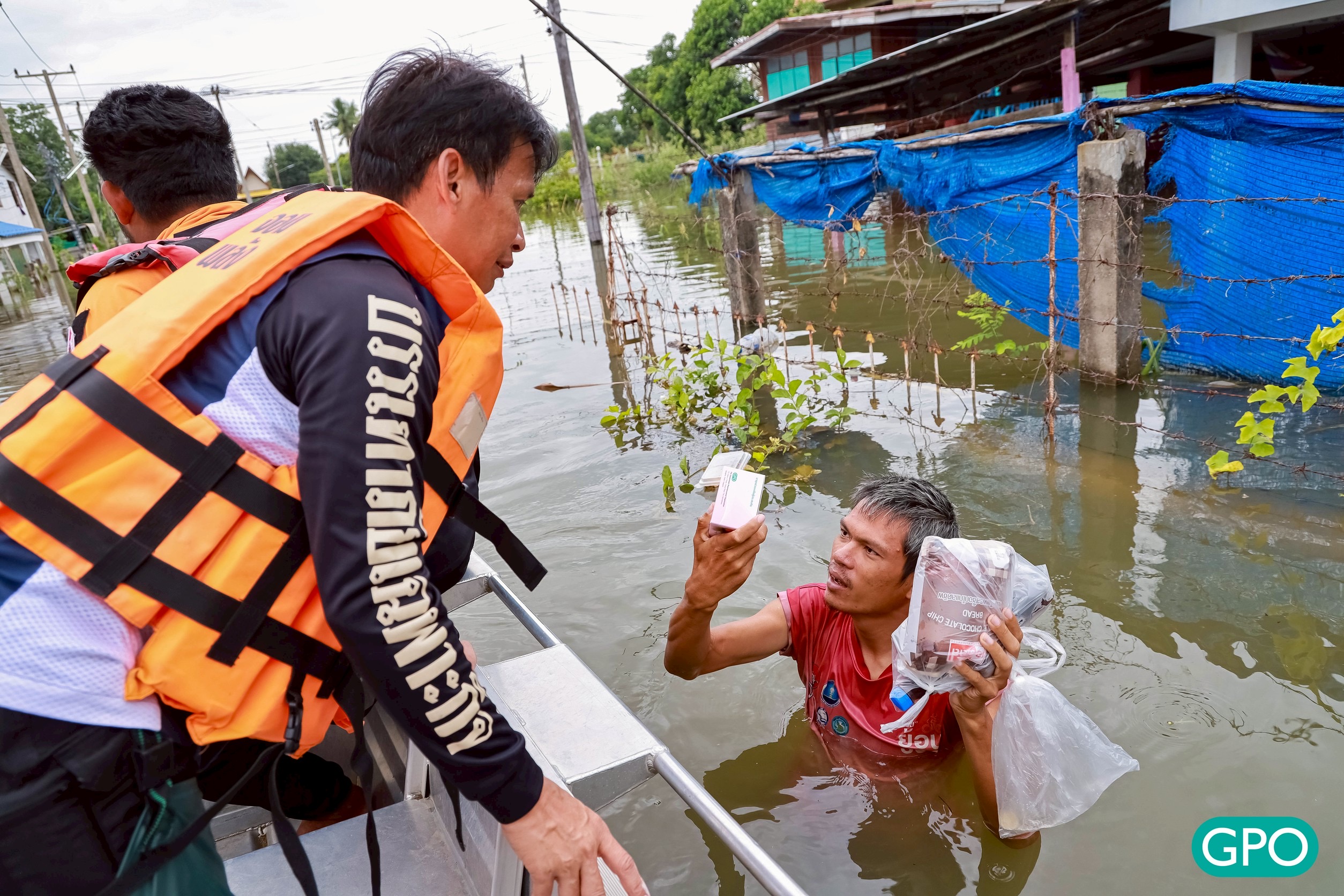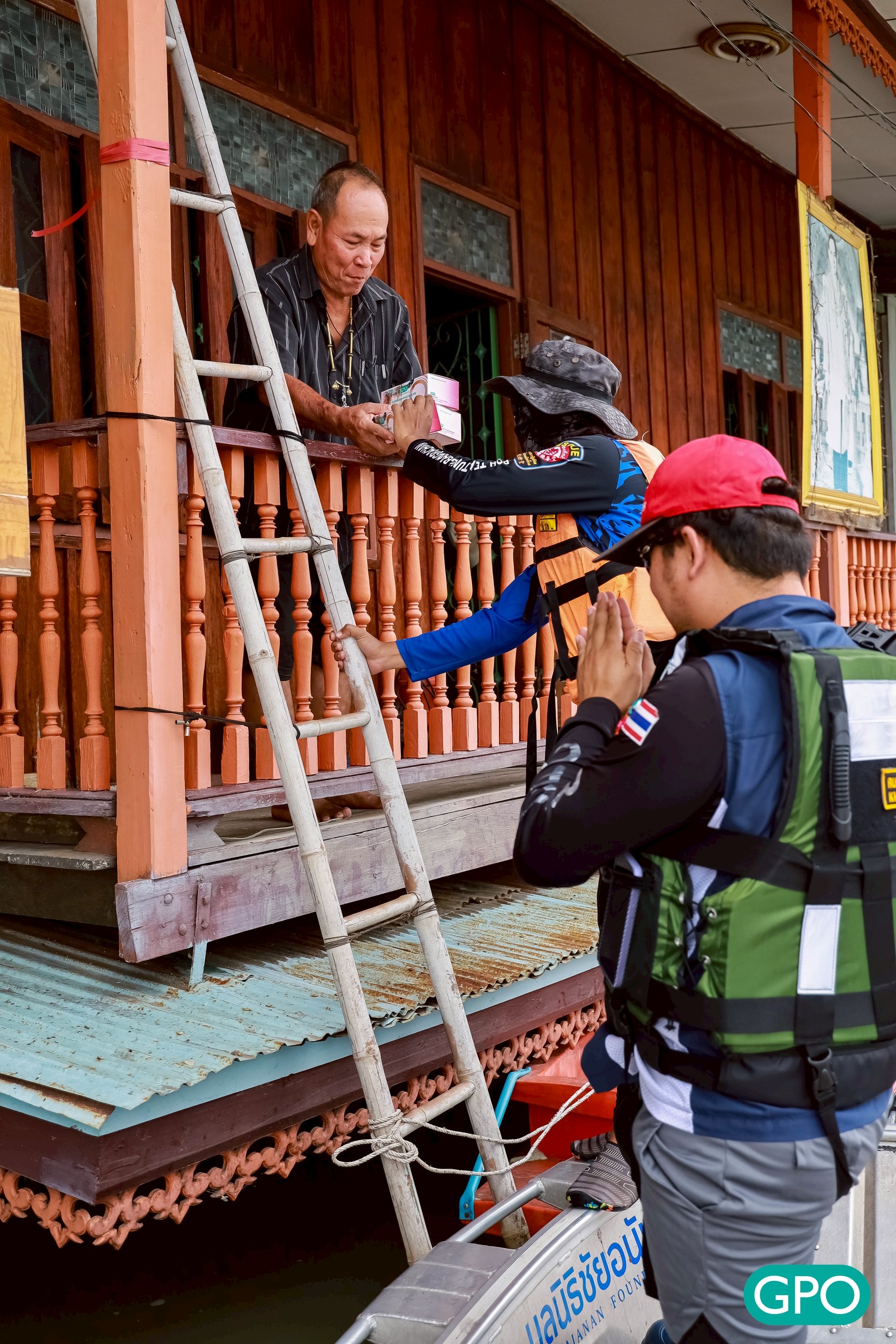 โดยการช่วยเหลือในครั้งนี้ องค์การฯมอบชุดผู้ประสบภัยได้แก่ ยาไมโครนาโซน 5 กรัม, ยาเพรดนิโซโลนครีม 5 กรัม, ยาเม็ดแก้แพ้ลดน้ำมูกคลอร์เฟนิรามิน, ยาเม็ดพาราเซตามอล 500 มก., ผงน้ำตาลเกลือแร่, แอลกอฮอล์เช็ดแผล, สำลี, และพลาสเตอร์ องค์การเภสัชกรรมพร้อมสนับสนุนการดูแลสุขภาพประชาชนในทุกสถานการณ์ โดยเฉพาะช่วงน้ำท่วมที่มีความเสี่ยงต่อโรคติดเชื้อ การขาดยารักษาโรคและปัญหาสุขภาพในกลุ่มเด็กผู้สูงอายุและผู้ป่วยโรคเรื้อรังจะยังคงจัดส่งยาและเวชภัณฑ์เพิ่มเติมอย่างต่อเนื่องจนกว่าสถานการณ์จะคลี่คลาย สำหรับจังหวัดสิงห์บุรีหลายพื้นที่ยังมีฝนตกหนักอย่างต่อเนื่องและพนังกั้นน้ำได้รับความเสียหายหลายจุด ส่งผลให้ประชาชนจำนวนมากประสบปัญหาทั้งด้านที่อยู่อาศัยการสัญจรไม่สะดวก รวมถึงการเข้าถึงบริการด้านสาธารณสุขเป็นไปอย่างยากลำบาก การลงพื้นที่ขององค์การเภสัชกรรมในครั้งนี้ จึงช่วยบรรเทาความเดือดร้อนและเพิ่มความมั่นใจให้กับประชาชนในการดูแลสุขภาพในช่วงวิกฤตน้ำท่วม