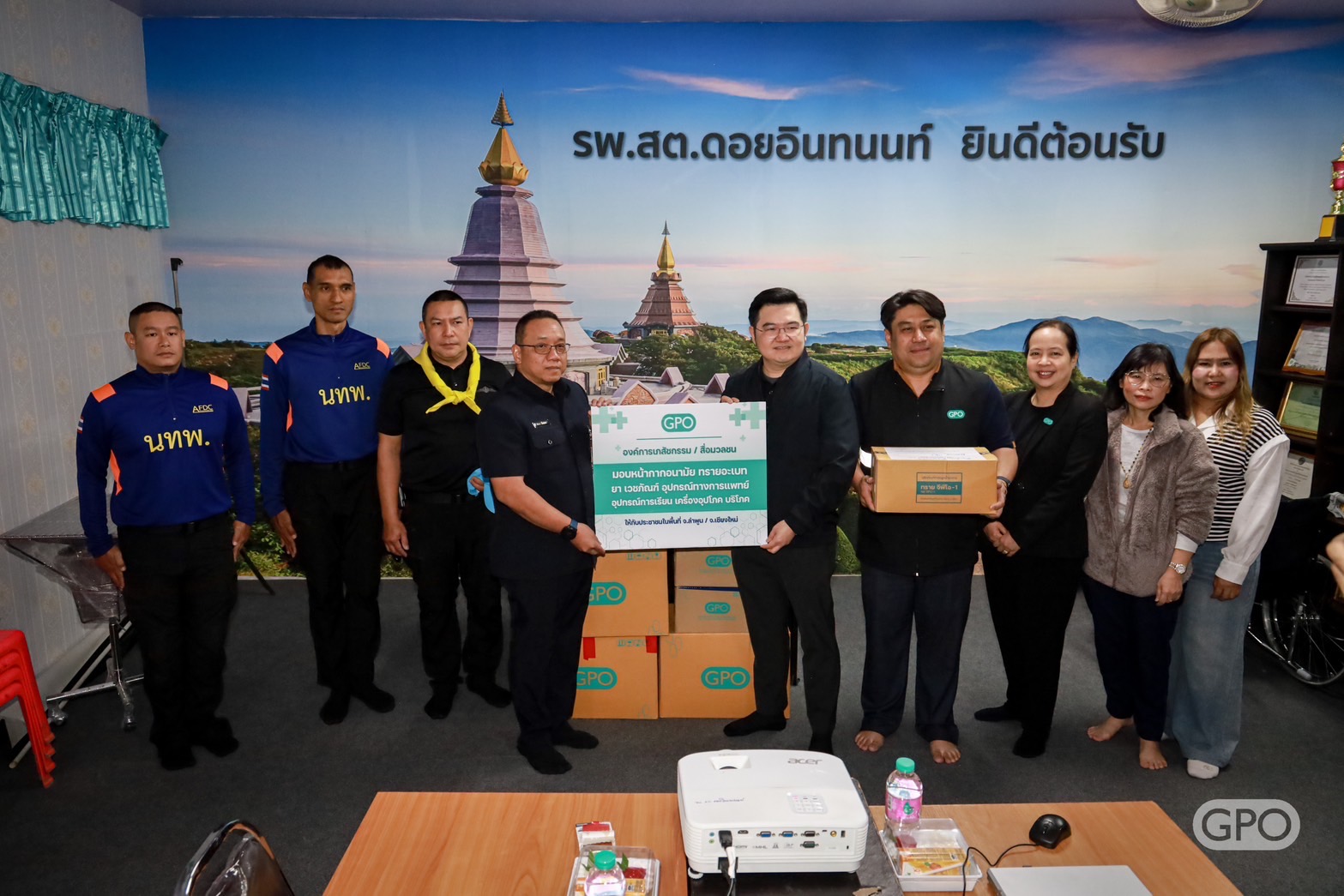 วันที่ 23 ธันวาคม 2568 เวลา 09.00 น. ณ ห้องประชุมโรงพยาบาลส่งเสริมสุขภาพตำบลดอยอินทนนท์ อำเภอจอมทอง จังหวัดเชียงใหม่ ดร.ภก.จตุพล เจริญกิจไพบูลย์ รองผู้อำนวยการองค์การเภสัชกรรม พร้อมด้วยคณะผู้บริหารองค์การเภสัชกรรม และสื่อมวลชน มอบยา เวชภัณฑ์ อุปกรณ์ทางการแพทย์ หน้ากากอนามัย ทรายอะเบท ให้กับโรงพยาบาลส่งเสริมสุขภาพตำบลดอยอินทนนท์ มอบหน้ากาก ทรายอะเบท ให้กับสำนักงานพัฒนาภาค 3 หน่วยบัญชาการทหารพัฒนา กองบัญชาการกองทัพไทย และมอบชุดเสริมพัฒนาการอุปกรณ์การเรียน ให้กับศูนย์เด็กเล็กบ้านขุนกลาง ตำบลบ้านหลวง อำเภอจอมทอง จังหวัดเชียงใหม่