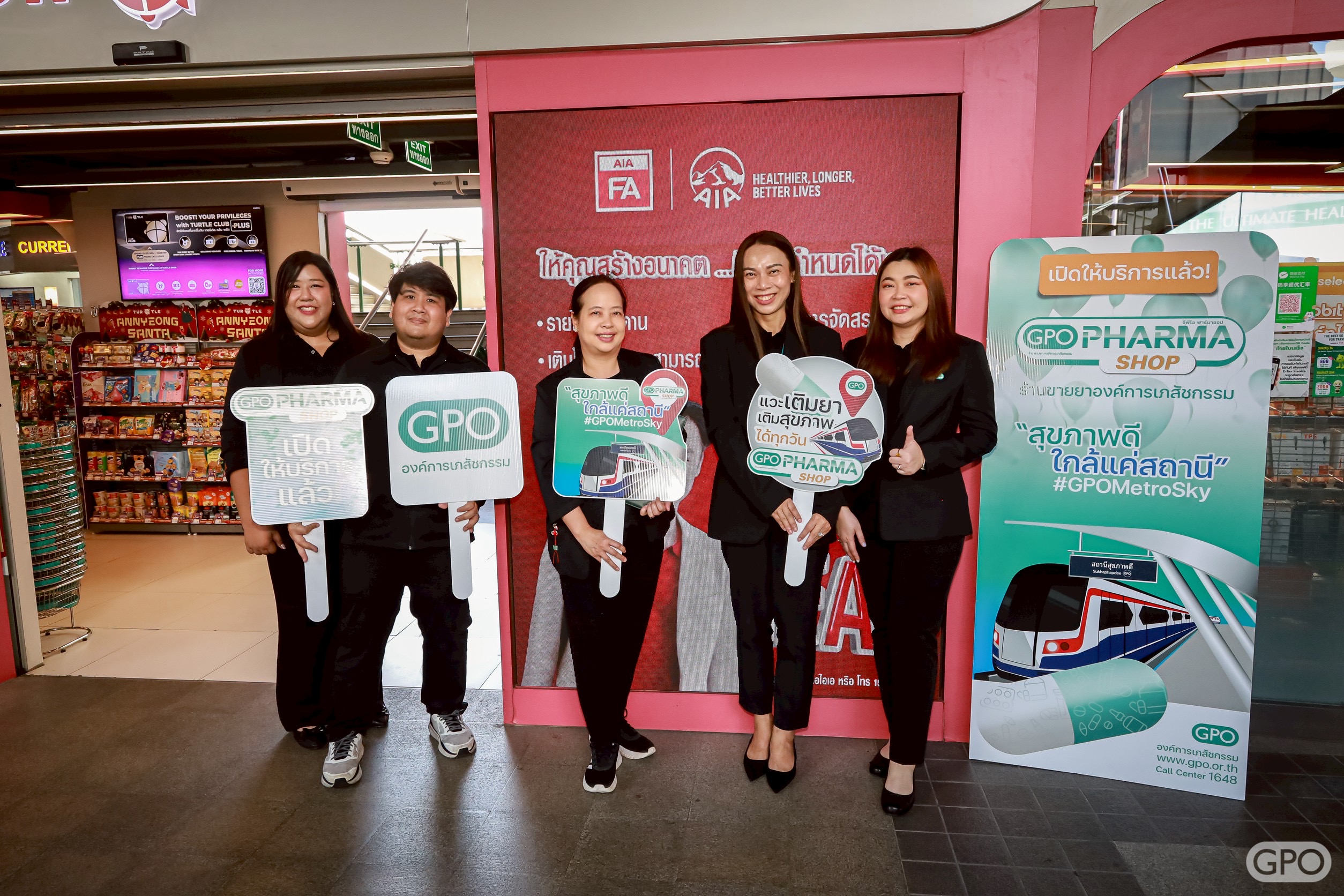 พญ.มิ่งขวัญ สุพรรณพงศ์ ผู้อำนวยการองค์การเภสัชกรรม เปิดเผยว่า องค์การเภสัชกรรมได้เปิดร้านขายยาบนสถานีรถไฟฟ้า BTS ภายใต้โครงการจัดตั้งร้านขายยาองค์การเภสัชกรรม “GPO METRO SKY” ขึ้น เพื่อตอบโจทย์ไลฟ์สไตล์คนเมืองให้เข้าถึงบริการด้านสุขภาพอย่างครบวงจรจำนวน 15 สถานี ได้แก่ สถานีชิดลม สถานีอโศก สถานีพร้อมพงษ์ สถานีศาลาแดง สถานีช่องนนทรี สถานีอ่อนนุช สถานีเอกมัย สถานีพระโขนง สถานีสุรศักดิ์ สถานีเซนต์หลุยส์ สถานีเพลินจิต สถานีสนามกีฬาแห่งชาติ สถานีหมอชิต สถานีอารีย์ และสถานีอนุสาวรีย์ชัยสมรภูมิ โดยขณะเปิดให้บริการแล้ว 14 สถานี และปลายเดือนมกราคม 2569 จะเปิดให้บริการที่สถานีอนุสาวรีย์ชัยสมรภูมิ
