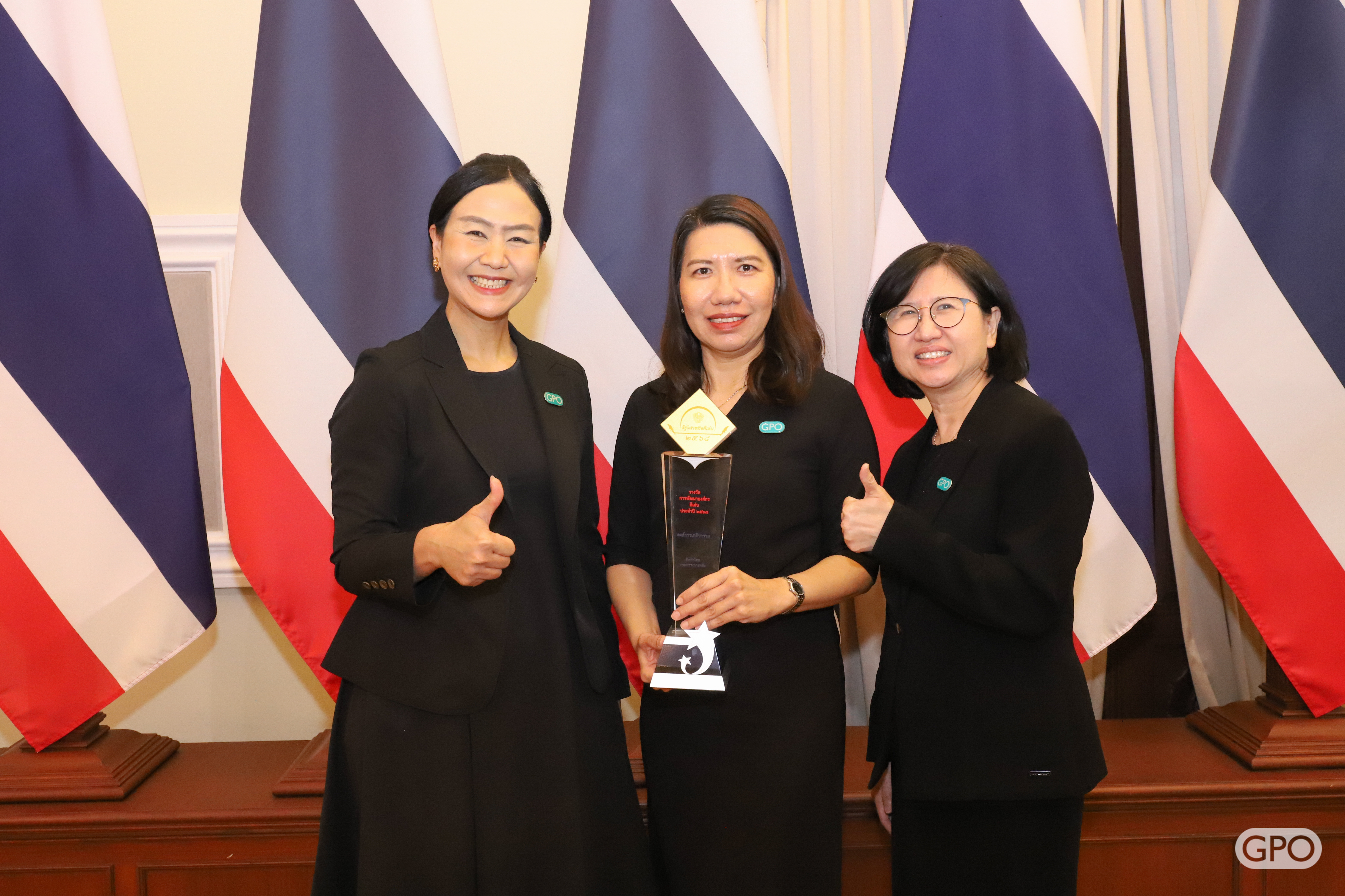 องค์การเภสัชกรรมขอขอบพระคุณผู้มีส่วนสนับสนุนทุกภาคส่วน ทั้งจากหน่วยงานภาครัฐภาคเอกชน สังคม และชุมชน รวมถึงลูกค้า คู่ค้า และที่สำคัญที่สุดคือผู้ปฏิบัติงานขององค์การเภสัชกรรมทุกคนที่มีส่วนร่วมผลักดันให้เกิดความสำเร็จอันยิ่งใหญ่ในครั้งนี้จนสามารถคว้ารางวัลรัฐวิสาหกิจดีเด่นได้สำเร็จ