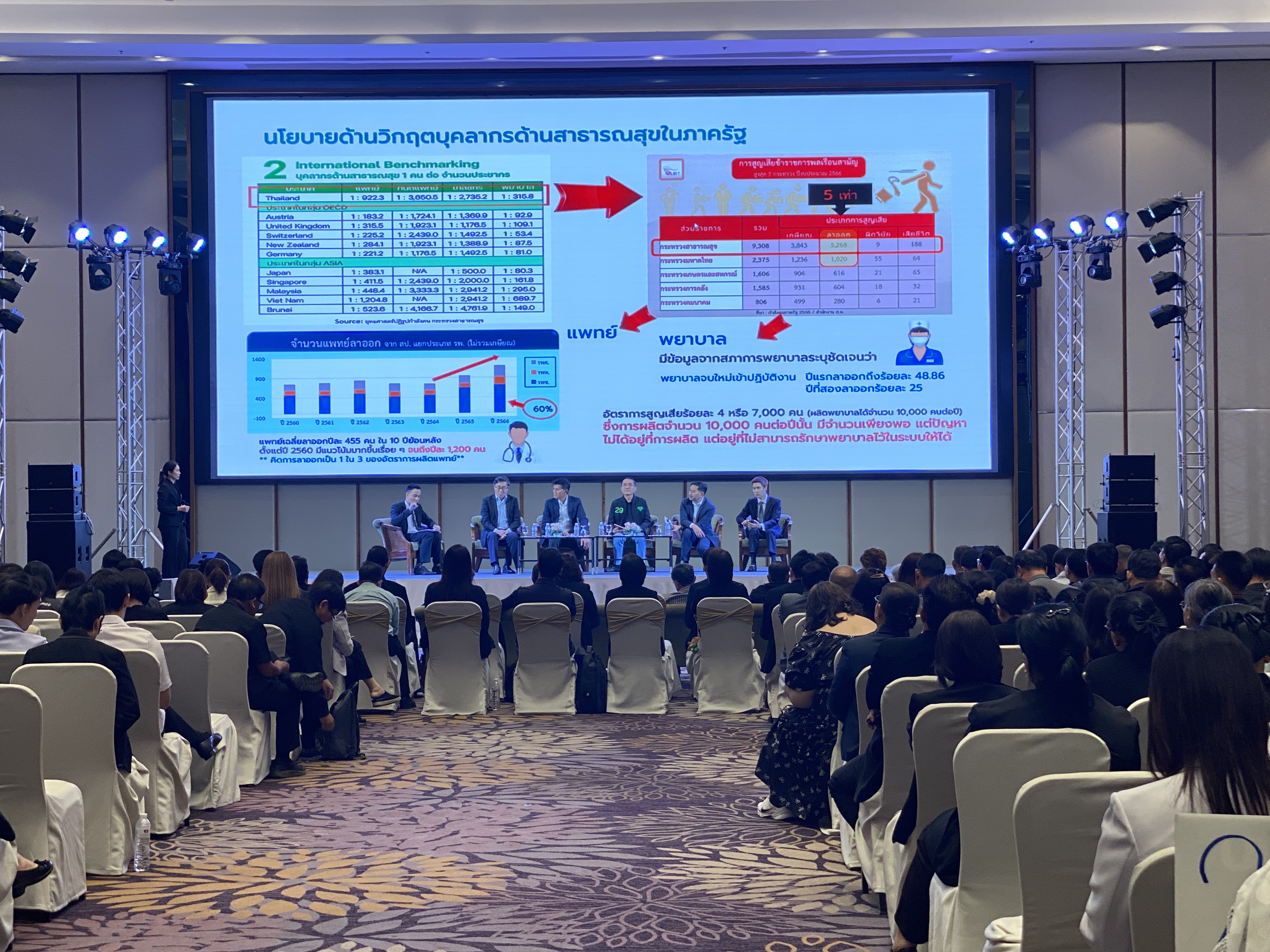 4.ประเด็นด้านวิกฤตบุคลากรด้านสาธารณสุขในภาครัฐ จากปัญหาความเพียงพอ การกระจายตัวแรงจูงใจในการคงอยู่ของบุคลากร รวมทั้งความไม่ยืดหยุ่นของระบบการบริหารบุคคลในภาครัฐ ส่งผลให้บุคลากรภาครัฐลาออกเป็นจำนวนเพิ่มมากขึ้นอย่างต่อเนื่องสร้างผลกระทบต่อภาระงานที่เพิ่มขึ้นในบุคลากรที่ยังคงอยู่ บุคลากรขาดขวัญและกำลังใจ และอาจส่งผลต่อการบริการรักษาพยาบาลแก่ประชาชนในที่สุด