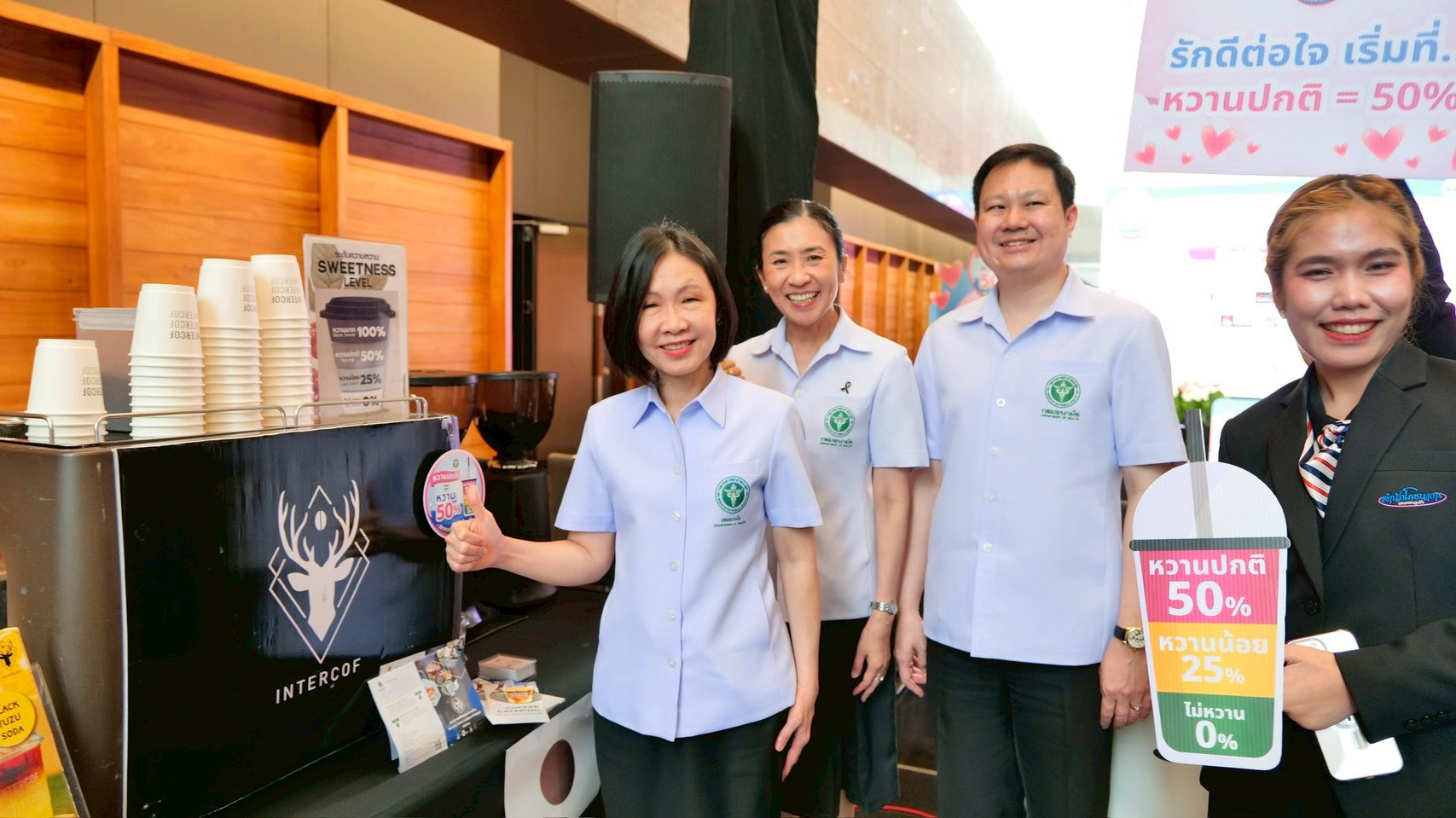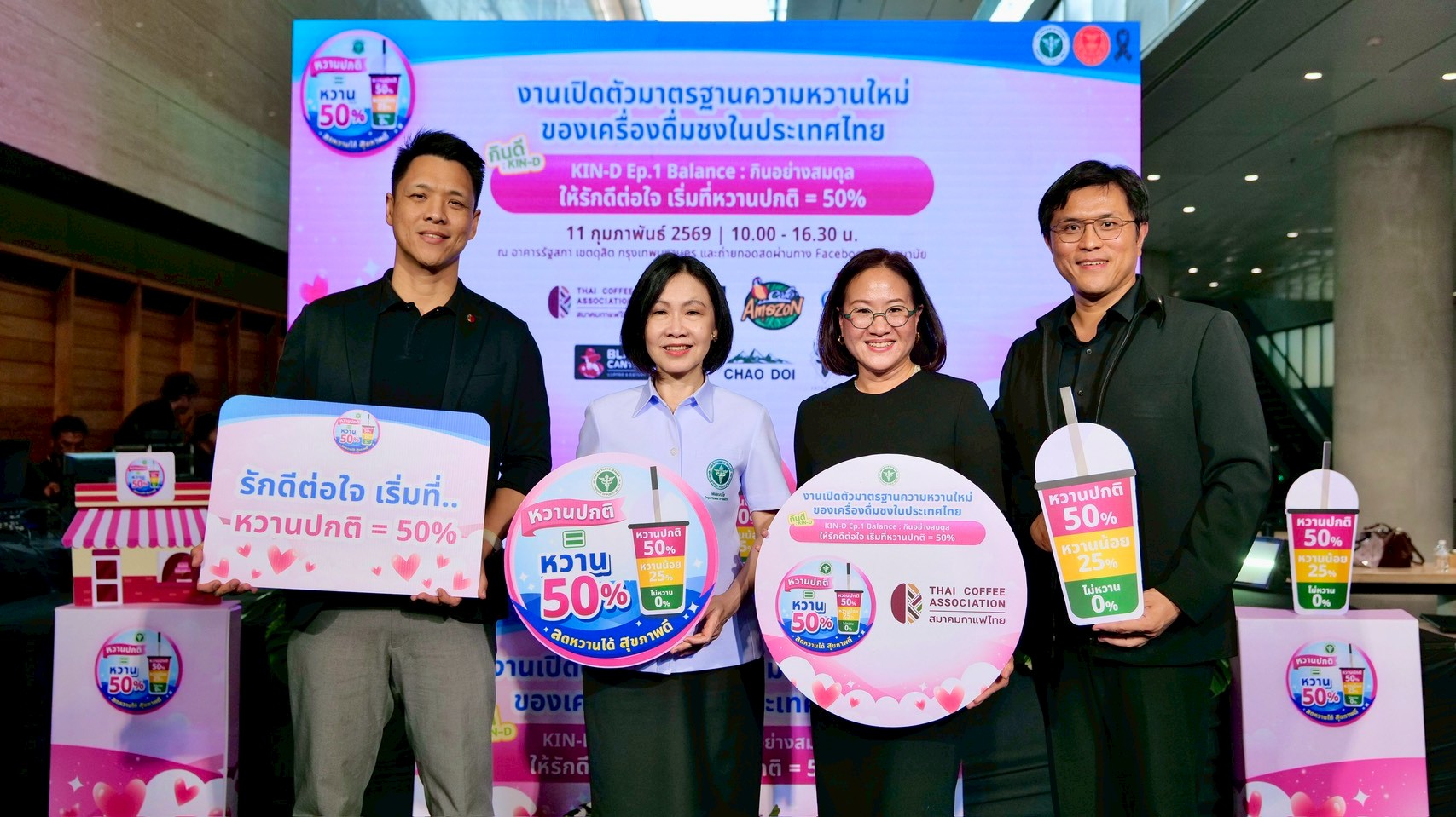 กระทรวงสาธารณสุข จับมือสมาคมกาแฟไทยและผู้ประกอบการ 9 แบรนด์ใหญ่ เปิดตัวมาตรฐานความหวานใหม่ของเครื่องดื่มชงทั่วประเทศไทย “หวานปกติ เท่ากับ หวาน 50%” หวังลดการบริโภคน้ำตาลเกินจำเป็นของประชาชน หลังพบโรคอ้วน เบาหวาน และโรคหัวใจเป็นภาระระบบสุขภาพเพิ่มต่อเนื่อง