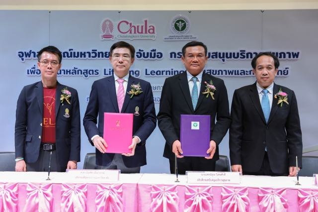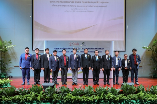 วันพุธที่ 3 พฤษภาคม 2566 ณ ห้องประชุม 801 ชั้น 8 อาคารเฉลิมราชกุมารี 60 พรรษา (จามจุรี 10) จุฬาลงกรณ์มหาวิทยาลัย ร่วมกับ กรมสนับสนุนบริการสุขภาพ (สบส.) กระทรวงสาธารณสุข (สธ.) ลงนามบันทึกข้อตกลงความร่วมมือทางวิชาการ พัฒนาหลักสูตร Lifelong Learning ด้านสุขภาพและการแพทย์ สำหรับบุคลากรสาธารณสุขและภาคธุรกิจที่เกี่ยวกับสุขภาพและการแพทย์ทุกระดับ เพื่อยกระดับมาตรฐานวิชาชีพบุคลากรใอุตสาหกรรมการแพทย์ของไทยให้เป็นที่ยอมรับในระดับนานาชาติ และมีความพร้อมต่อกาเปลี่ยนแปลงของวิทยาศาสตร์และความก้าวหน้าของเทคโนโลยีสมัยใหม่ สอดรับกับกระแสโลก ตลอดจนร่วมกันจัดทำโครงการจัดการความรู้ การพัฒนางานวิจัย รวมทั้งพัฒนานวัตกรรมที่เป็นผลิตภัณฑ์และ/หรือนวัตกรรมการบริการทางการแพทย์และสาธารณสุขต่อไปในอนาคตโดยมี ศาสตราจารย์ ดร.บัณฑิตเอื้ออาภรณ์ อธิการบดีจุฬาลงกรณ์มหาวิทยาลัย และนายแพทย์สุระ วิเศษศักดิ์ อธิบดีกรมสนับสนุนบริการสุขภาพ กระทรวงสาธารณสุข ร่วมลงนามความร่วมมือในครั้งนี้