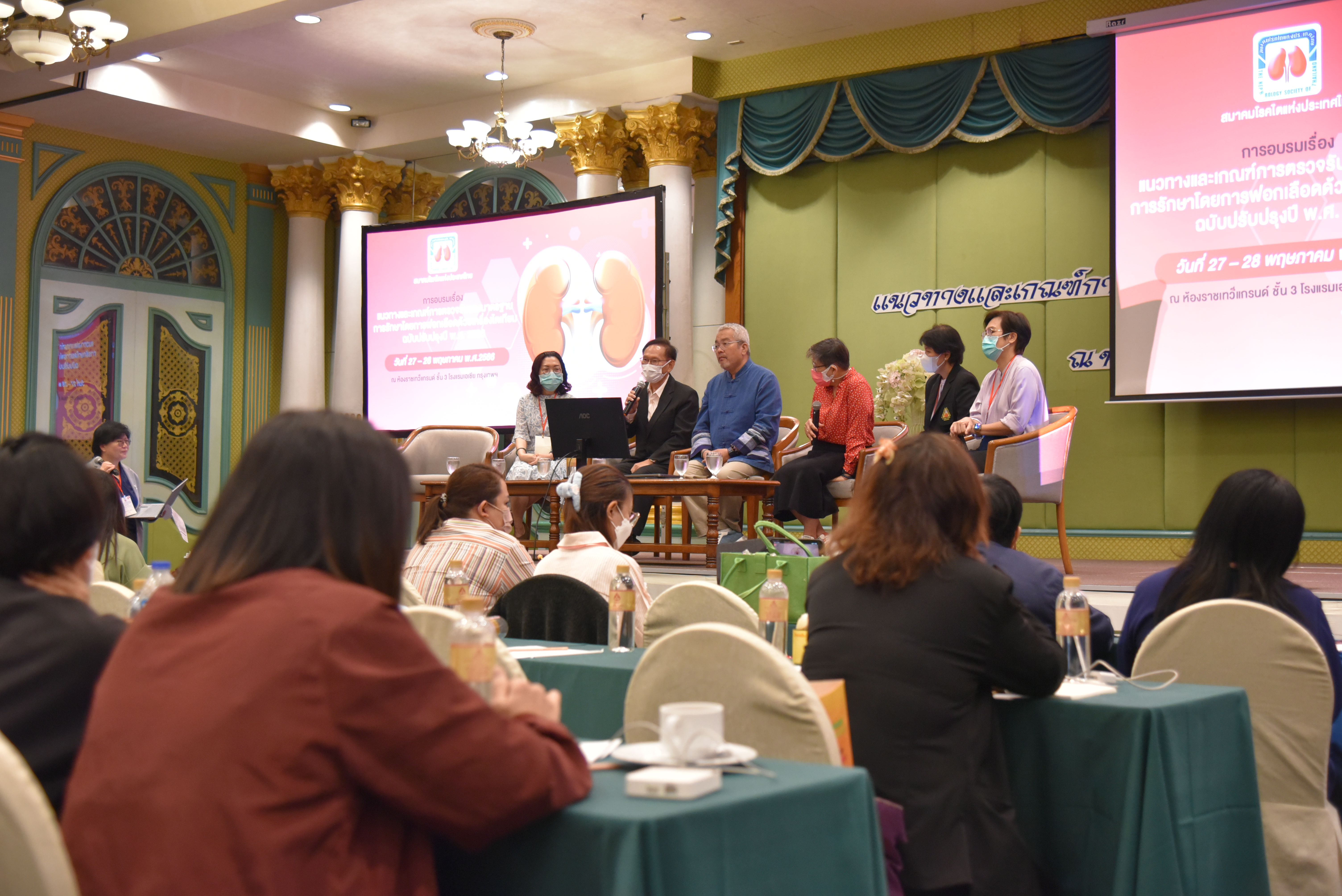 สมาคมโรคไตแห่งประเทศไทย ได้เข้าไปมีบทบาทในการกำหนดทิศทางนโยบายสาธารณสุขด้านโรคไตของประเทศ โดยทำงานประสานกับกระทรวงสาธารณสุข และ สปสช. ในปี 2566 นี้ สมาคมฯ ได้จัดอบรมเรื่องแนวทางและเกณฑ์การตรวจรับรองมาตรฐานการรักษาโดยการฟอกเลือดด้วยเครื่องไตเทียม โดยมีนพ.วุฒิเดช โอภาศเจริญสุข นายกสมาคมโรคไตแห่งประเทศไทย เป็นประธานพิธีเปิดและเป็นวิทยากรร่วมให้คำบรรยาย รวมทั้งคณาจารย์แพทย์และพยาบาลผู้ชำนาญร่วมให้คำบรรยาย คือ ทพ. อาคม ประดิษฐสุวรรณ รองอธิบดีกรมสนันสนุนบริการสุขภาพ , พล.อ.ท.นพ.กลศร ภัคโชตานนท์, ศ.นพ. ขจร ตรีรณธนากุล, ผศ.พญ.ไกรวิพร เกียรติสุนทร, ศ.ดร.พญ.ปวีณา สุสัณฐิติพงษ์, นพ.สดุดี พีรพรรัตนา, พว.สุชาดา บุญแก้ว, นพ.อดิศร ปทุมรักษ์, พ.อ.นพ.อดิสรณ์ ลำเพาพงศ์, น.ท.นพ. อนันต์ เชื้อสุวรรณ, พว.นันทา มหัธนันท์, พว.นันทนา ชปิลเลส, พว.สุนทรี เพิ่มพูลสวัสดิ์ ณ.โรงแรม เอเชีย กรุงเทพฯ เมื่อวันที่ 27-28 พฤษภาคม พ.ศ.2566 ที่ผ่านมา