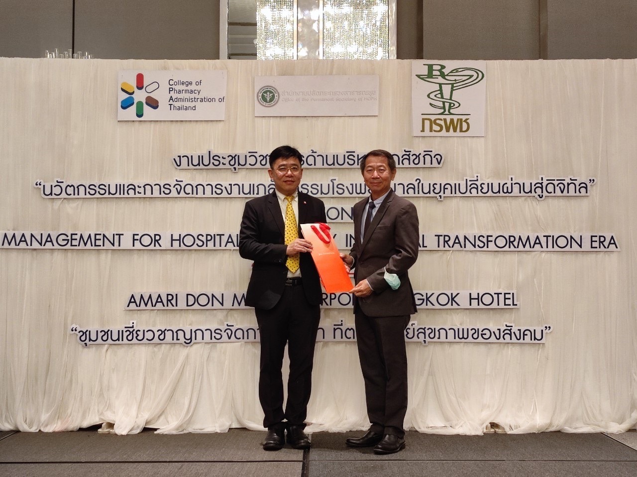 ทั้งนี้การประชุมวิชาการด้านการบริหารเภสัชกิจ “นวัตกรรมและการจัดการงานเภสัชกรรมโรงพยาบาลในยุคเปลี่ยนผ่านสู่ดิจิทัล” จัดขึ้นโดยความร่วมมือของวิทยาลัยการบริหารเภสัชกิจแห่งประเทศไทย สภาเภสัชกรรม สำนักงานปลัดกระทรวงสาธารณสุข และชมรมเภสัชกรโรงพยาบาลชุมชน กระทรวงสาธารณสุข เพื่อนำเสนอนวัตกรรม และความก้าวหน้าในการจัดงานเภสัชกรรมโรงพยาบาล