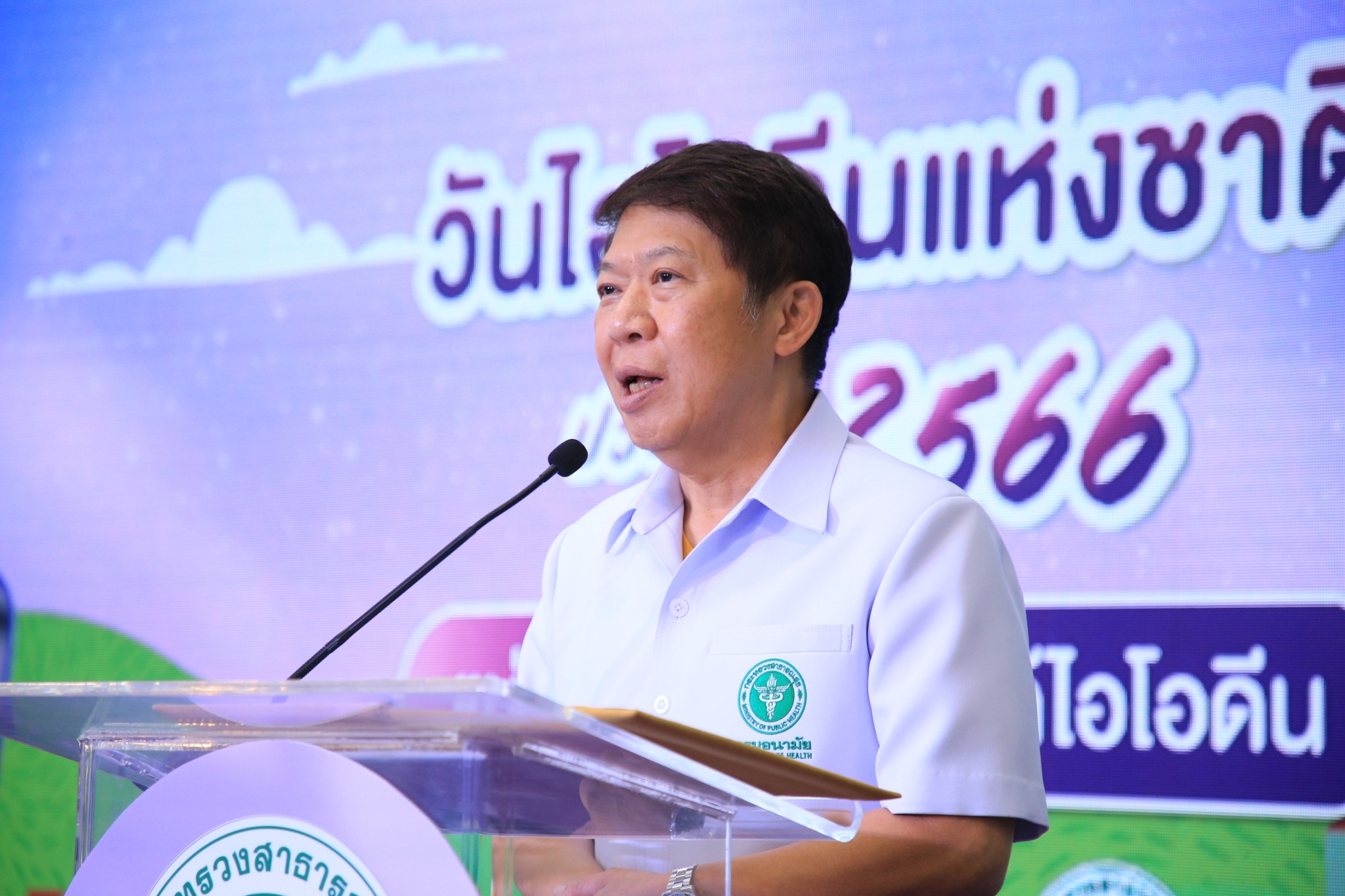 “สำหรับปีนี้ กรมอนามัยจึงได้จัดกิจกรรมรณรงค์วันไอโอดีนแห่งชาติ ประจำปี 2566 ภายใต้หัวข้อ แม่ตั้งครรภ์ ขาดไม่ได้ไอโอดีน’ พร้อมลงนามความร่วมมือการขับเคลื่อนการดำเนินงานควบคุมและป้องกัน โรคขาดสารไอโอดีน ร่วมกับ กรมสนับสนุนบริการสุขภาพ เพื่อให้อาสาสมัครสาธารณสุขประจำหมู่บ้าน (อสม.)และเจ้าหน้าที่สาธารณสุขในพื้นที่ ขับเคลื่อนการดำเนินงานควบคุมและป้องกันโรคขาดสารไอโอดีนในชุมชน หมู่บ้าน ทั่วประเทศ และติดตามหญิงตั้งครรภ์ให้ได้รับและทานยาเม็ดเสริมไอโอดีน ธาตุเหล็ก และกรดโฟลิก รวมทั้ง ให้ความรู้แก่ประชาชนในการเลือกบริโภคเกลือเสริมไอโอดีน และผลิตภัณฑ์เสริมไอโอดีนในการประกอบอาหาร นอกจากนี้ ยังได้มีขับเคลื่อนการดำเนินงานชุมชน หมู่บ้านไอโอดีน ผ่าน Platform อนามัยไอโอดีน ซึ่งขณะนี้ มีชุมชน หมู่บ้านไอโอดีน ผ่านการประเมินฯ จำนวน 27,550 แห่ง มีร้านค้า ร้านอาหารที่ใช้ผลิตภัณฑ์เสริมไอโอดีนในการประกอบอาหาร จำนวน 14,549 แห่งทั่วประเทศ” อธิบดีกรมอนามัย กล่าว