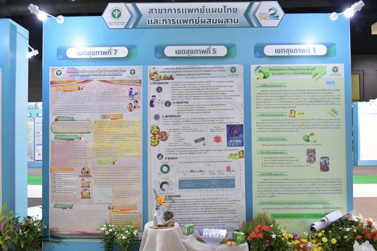 นายแพทย์ณรงค์ กล่าวต่อว่า การแสดงผลงานทางวิชาการนี้ มีผู้ส่งผลงานด้านวิชาการและผลงานด้านนวัตกรรมทั้ง 19 สาขา ได้แก่ 1.โรคหัวใจ 2.โรคมะเร็ง 3.อุบัติเหตุและฉุกเฉิน 4.ทารกแรกเกิด 5.สุขภาพจิตและสารเสพติด 6.แม่และเด็ก 7.ระบบบริการปฐมภูมิและสุขภาพอำเภอ 8.สุขภาพช่องปาก 9.ไต 10.ตา 11.โรคไม่ติดต่อ 12.การแพทย์แผนไทยและการแพทย์ผสมผสาน 13.การรับบริจาคและปลูกถ่ายอวัยวะ 14.การใช้ยาอย่างสมเหตุสมผลและการจัดการการดื้อยาต้านจุลชีพ 15.การดูแลระยะเปลี่ยนผ่านผู้ป่วยกึ่งเฉียบพลันและการดูแลแบบประคับประคอง 16.ศัลยกรรม 17.อายุรกรรม 18.ออร์โธปิดิกส์ และ 19.การใช้กัญชาทางการแพทย์ จาก 13 เขตสุขภาพ รวม 491 เรื่อง แบ่งเป็น การนำเสนอด้วยวาจา 251 เรื่อง และนำเสนอด้วยโปสเตอร์ 240 เรื่อง ซึ่งคณะกรรมการผู้ทรงคุณวุฒิได้ตัดสินผลงานการนำเสนอทางวาจาดีเด่น สาขาละ 1 รางวัล และผลงานการนำเสนอแบบโปสเตอร์ดีเด่นสาขาละ 1 รางวัล นอกจากนี้ ผู้ร่วมประชุมยังได้ร่วมคัดเลือกผลงาน Popular Vote ด้านวิชาการ 1 รางวัล และด้านนวัตกรรม 1 รางวัล รวมทั้งสิ้น 40 รางวัล