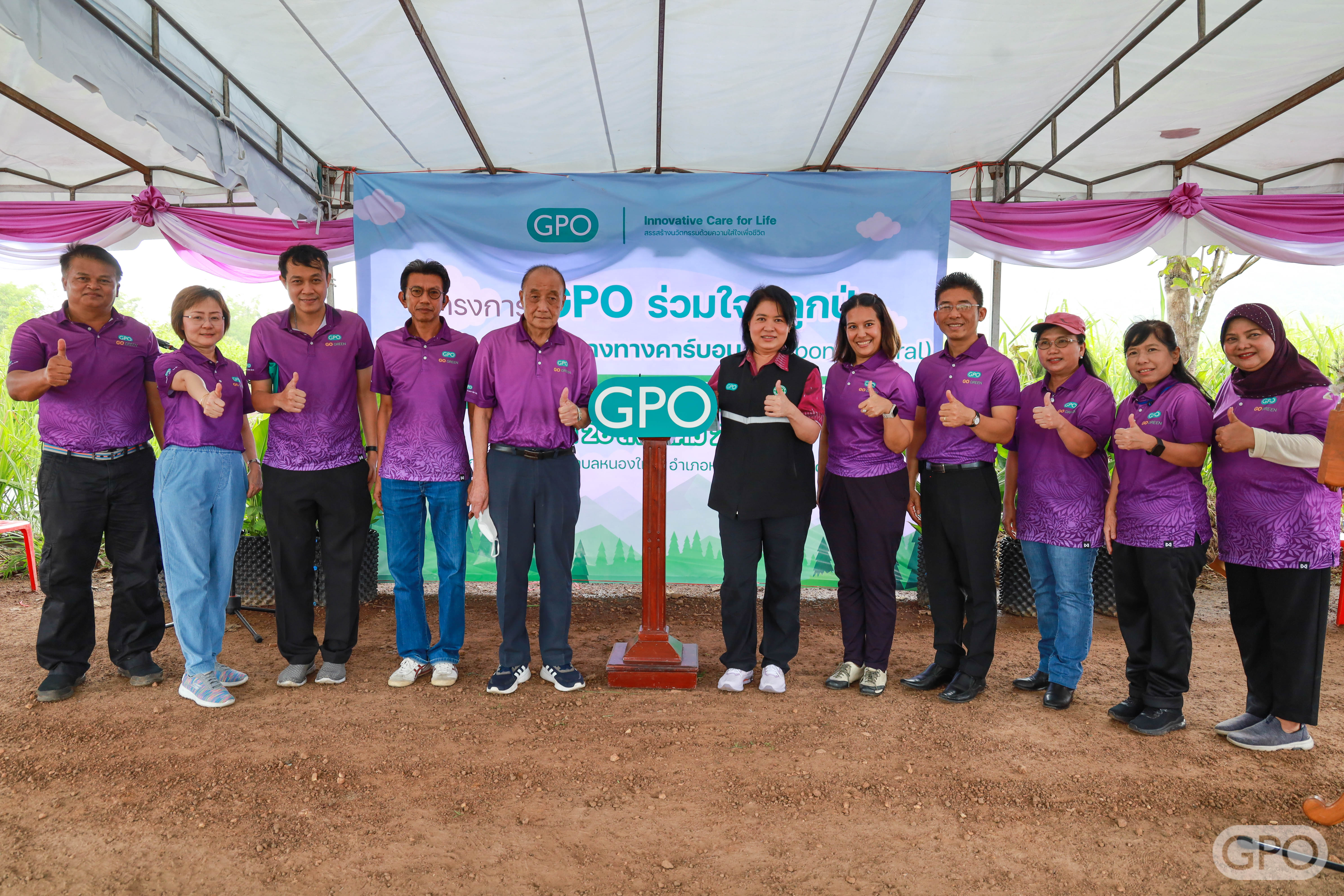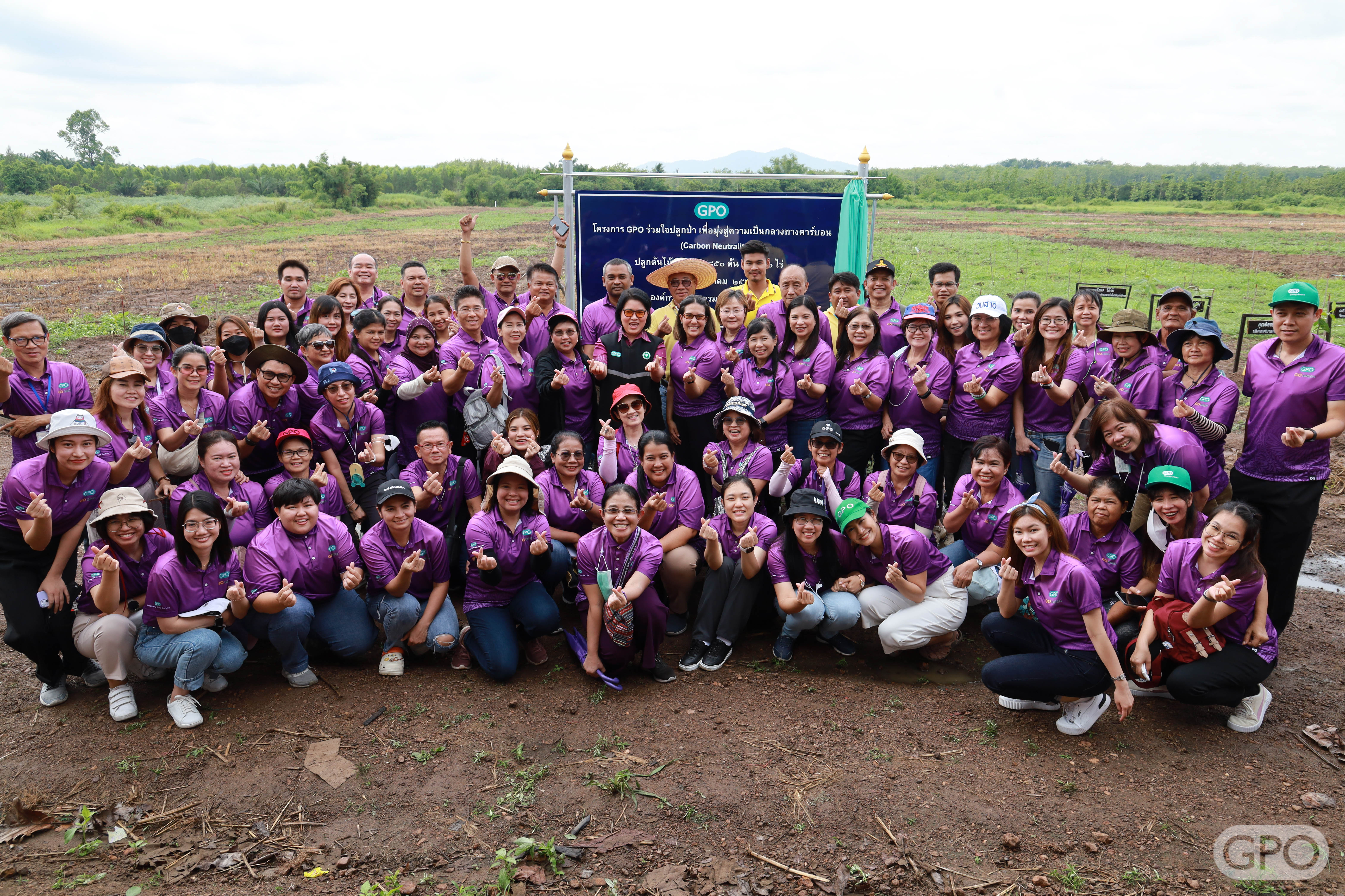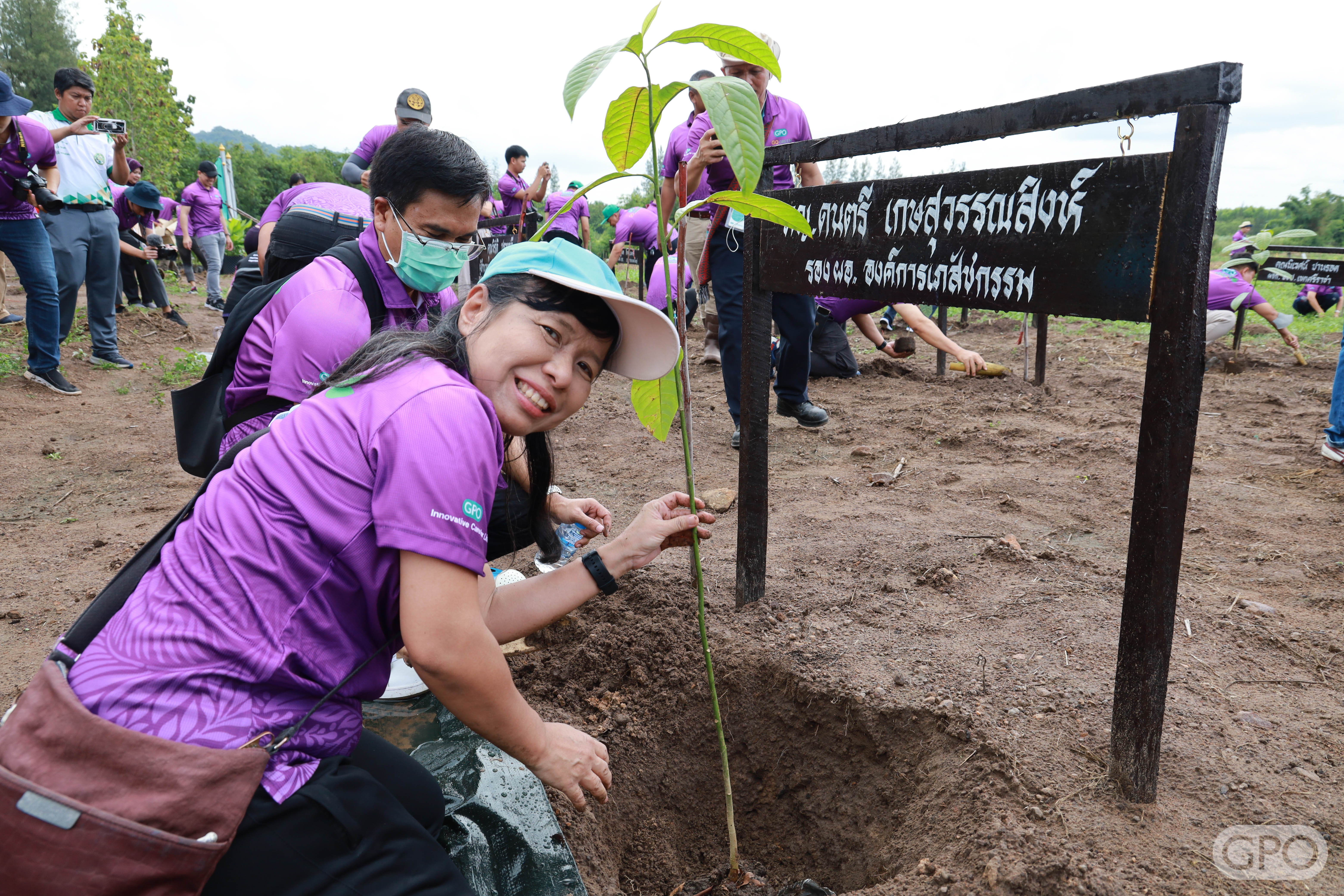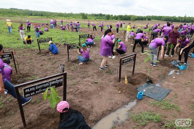 วันที่ 26 สิงหาคม 2566 พญ.มิ่งขวัญ สุพรรณพงศ์ ผู้อำนวยการองค์การเภสัชกรรม พร้อมด้วยคณะกรรมการองค์การเภสัชกรรม คณะผู้บริหาร ผู้ปฏิบัติงานองค์การเภสัชกรรม และประชาชนรอบพื้นที่ จำนวน 200 คน ภายใต้โครงการ “GPO ร่วมใจปลูกป่า เพื่อมุ่งสู่ความเป็นกลางทางคาร์บอน (Carbon Neutral)” ร่วมปลูกต้นไม้ จำนวน 17 ชนิด ประกอบด้วย 1. แดง 2. ชิงชัน 3. ยางนา 4. มะค่า 5. ตะเคียน 6. หว้า 7. กฤษณา 8. มะขามป้อม 9. นนทรีป่า 10. พะยูง 11. สัก 12. มะหาด 13. สาธร 14. ตะแบก 15. ประดู่ป่า 16. พะยอม 17. จำปาป่า (ตองสะกา)