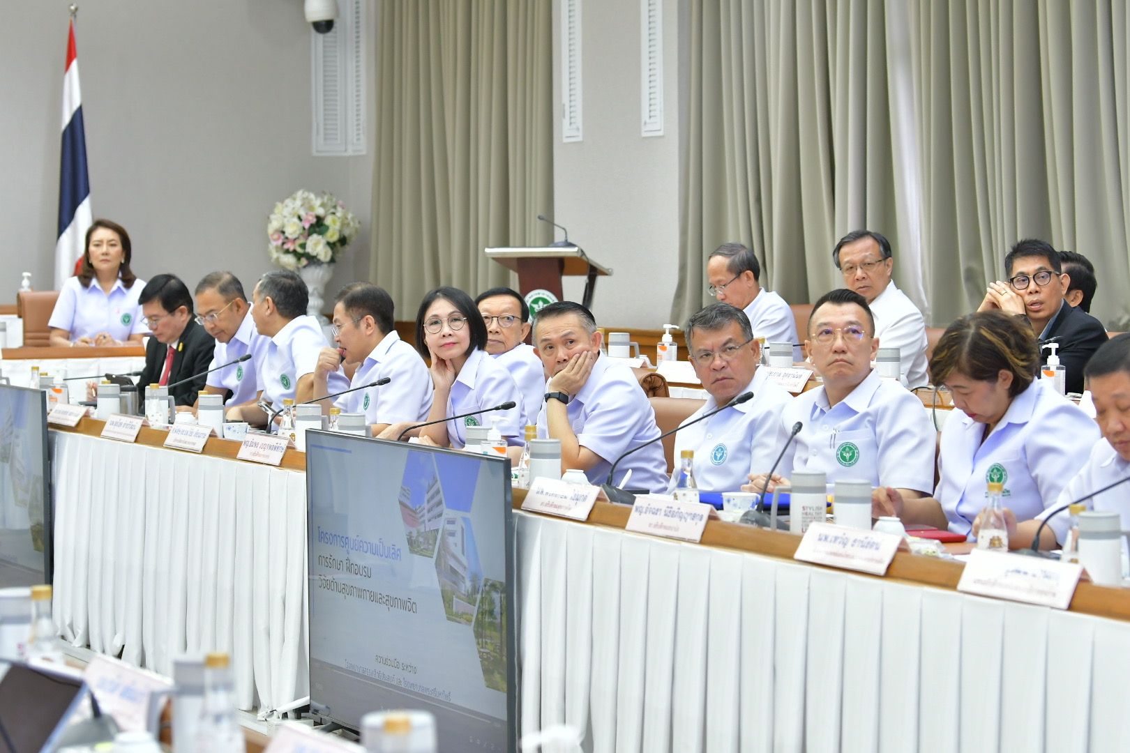 วันที่8 พฤศจิกายน 2566 ที่กระทรวงสาธารณสุข จ.นนทบุรี นพ.ชลน่าน ศรีแก้ว รัฐมนตรีว่าการกระทรวงสาธารณสุข พร้อมด้วย นายสันติ พร้อมพัฒน์ รัฐมนตรีช่วยว่าการกระทรวงสาธารณสุข นพ.โอภาส การย์กวินพงศ์ ปลัดกระทรวงสาธารณสุข ประชุมผู้บริหารระดับสูงกระทรวงสาธารณสุข ครั้งที่ 11/2566 โดย นพ.ชลน่าน เปิดเผยว่า ที่ประชุมมีการติดตามความก้าวหน้าการขับเคลื่อนนโยบายกระทรวงสาธารณสุขในแต่ละประเด็น เช่น เรื่องการสร้างขวัญกำลังใจบุคลากรทางการแพทย์ ได้มีการลงนามร่วมกับจุฬาลงกรณ์มหาวิทยาลัย พัฒนาหลักสูตร Care D+ เพื่ออบรมบุคลากรโรงพยาบาลให้เป็นทีมประสานใจระหว่างญาติ ผู้ป่วย และบุคลากรทางการแพทย์ ซึ่งจะมีการเปิดตัวโครงการอบรมในวันที่ 10 พฤศจิกายนนี้ ส่วนเรื่องมะเร็งครบวงจร ได้เริ่มฉีดวัคซีน HPV ป้องกันมะเร็งปากมดลูกให้แก่หญิงไทยอายุ 11-20 ปี ในกลุ่มนักเรียนหญิงในสถานศึกษาแล้ว โดยมีการจัดกิจกรรมคิกออฟที่โรงเรียนไทรน้อย จ.นนทบุรี สำหรับประเด็นจิตเวชและยาเสพติด พบว่า ขณะนี้มีการจัดตั้ง "มินิธัญญารักษ์" ซึ่งเป็นสถานบำบัดรักษาและฟื้นฟูผู้ติดยาเสพติดในโรงพยาบาลชุมชนแล้ว 26 จังหวัด 42 แห่ง รวม 673 เตียง ได้กำชับให้เดินหน้าจัดตั้งให้ครบทุกจังหวัดโดยเร็วที่สุด ตามเป้าหมาย Quick Win 100 วัน ภาพรวมหอผู้ป่วยจิตเวชขณะนี้มี 127 แห่ง 1,367 เตียง มีกลุ่มงานจิตเวช 626 แห่ง และกำลังดำเนินการอีก 150 แห่ง