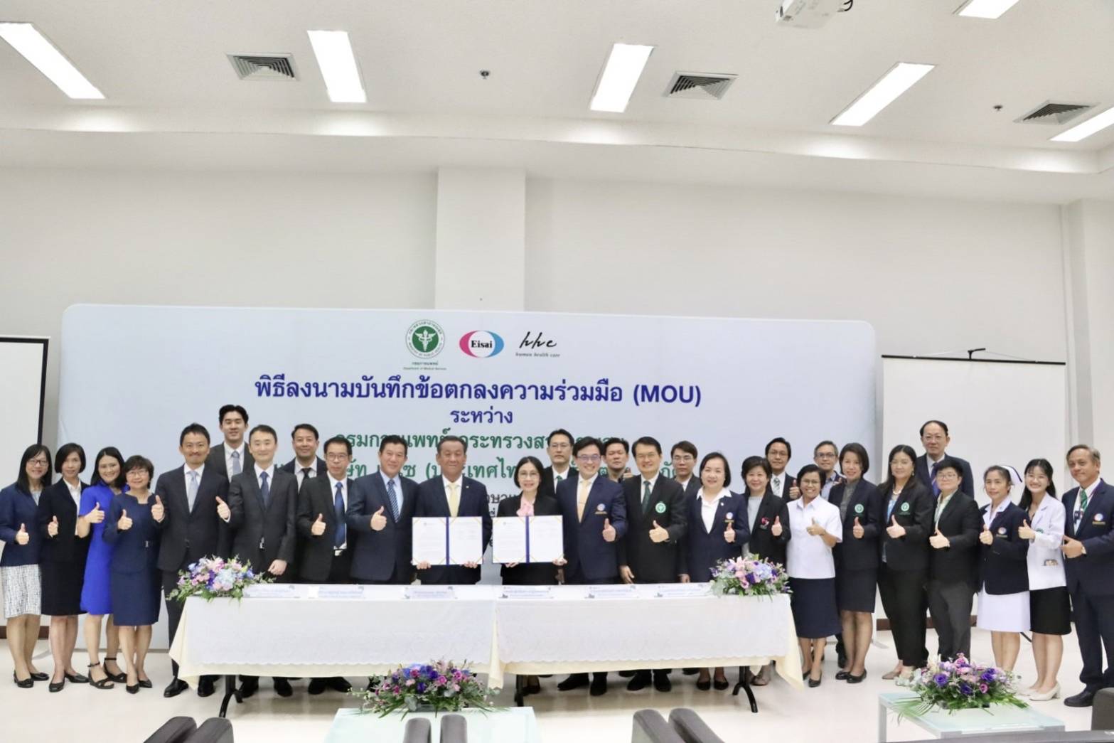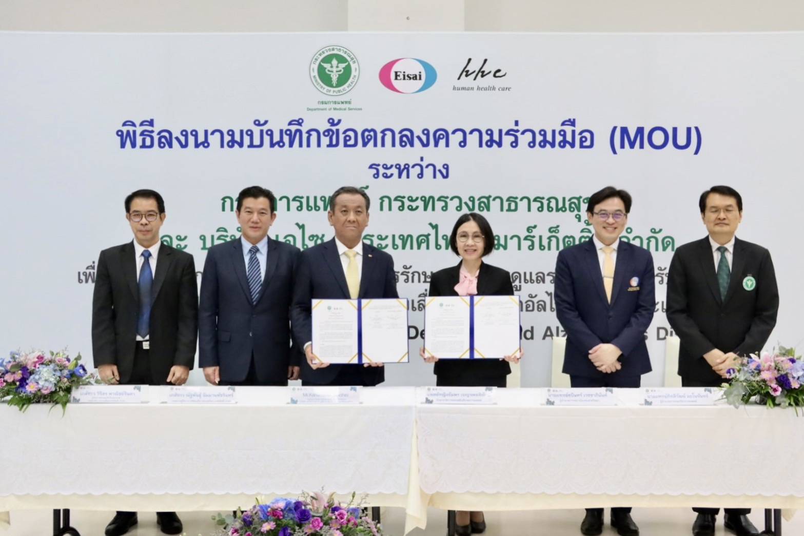 พิธีลงนามบันทึกข้อตกลงความร่วมมือระหว่าง กรมการแพทย์ กระทรวงสาธารณสุข และ บริษัท เอไซ (ประเทศไทย) มาร์เก็ตติ้ง จำกัด เพื่อร่วมพัฒนาการเข้าถึงการวินิจฉัย การรักษาและการดูแลระยะยาวสำหรับผู้สูงอายุ ผู้ป่วยภาวะปริชานบกพร่อง ภาวะสมองเสื่อม และโรคอัลไซเมอร์ในประเทศไทย(Mild Cognitive Impairment (MCI), Dementia and Alzheimer's Disease)