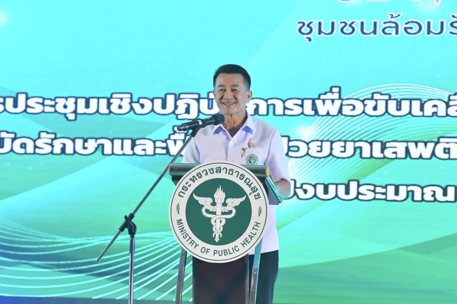 วันนี้ 24 มกราคม 2567 ที่ อิมแพ็ค ฟอรั่ม เมืองทองธานี จ.นนทบุรี นายแพทย์ชลน่าน ศรีแก้ว รัฐมนตรีว่าการกระทรวงสาธารณสุข พร้อมด้วย นายชาดา ไทยเศรษฐ์ รัฐมนตรีช่วยว่าการกระทรวงมหาดไทย เปิดประชุมเชิงปฏิบัติการเพื่อขับเคลื่อนการบำบัดรักษาและฟื้นฟูผู้ติดยาเสพติด โดยการมีส่วนร่วมของชุมชน (CBTx) “ชุมชนล้อมรักษ์” ประจำปีงบประมาณ พ.ศ. 2567 โดยมี นายแพทย์โอภาส การย์กวินพงศ์ ปลัดกระทรวงสาธารณสุข คณะที่ปรึกษากระทรวงสาธารณสุข คณะผู้บริหาร และภาคีเครือข่ายทั้งภาครัฐและเอกชน อาทิ กระทรวงกลาโหม กระทรวงมหาดไทย สำนักงานตำรวจแห่งชาติ กรมการส่งเสริมการปกครองส่วนท้องถิ่น เข้าร่วม