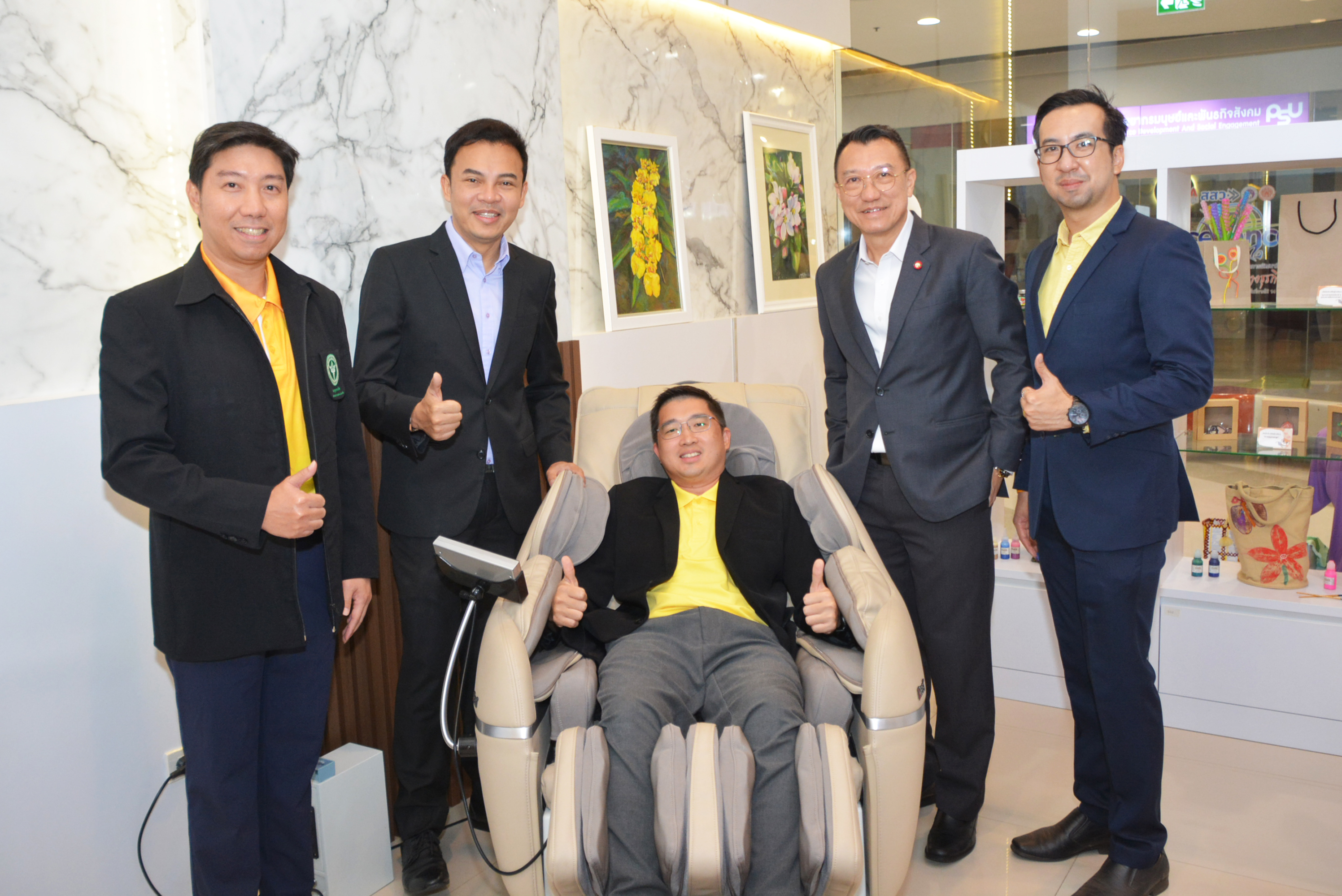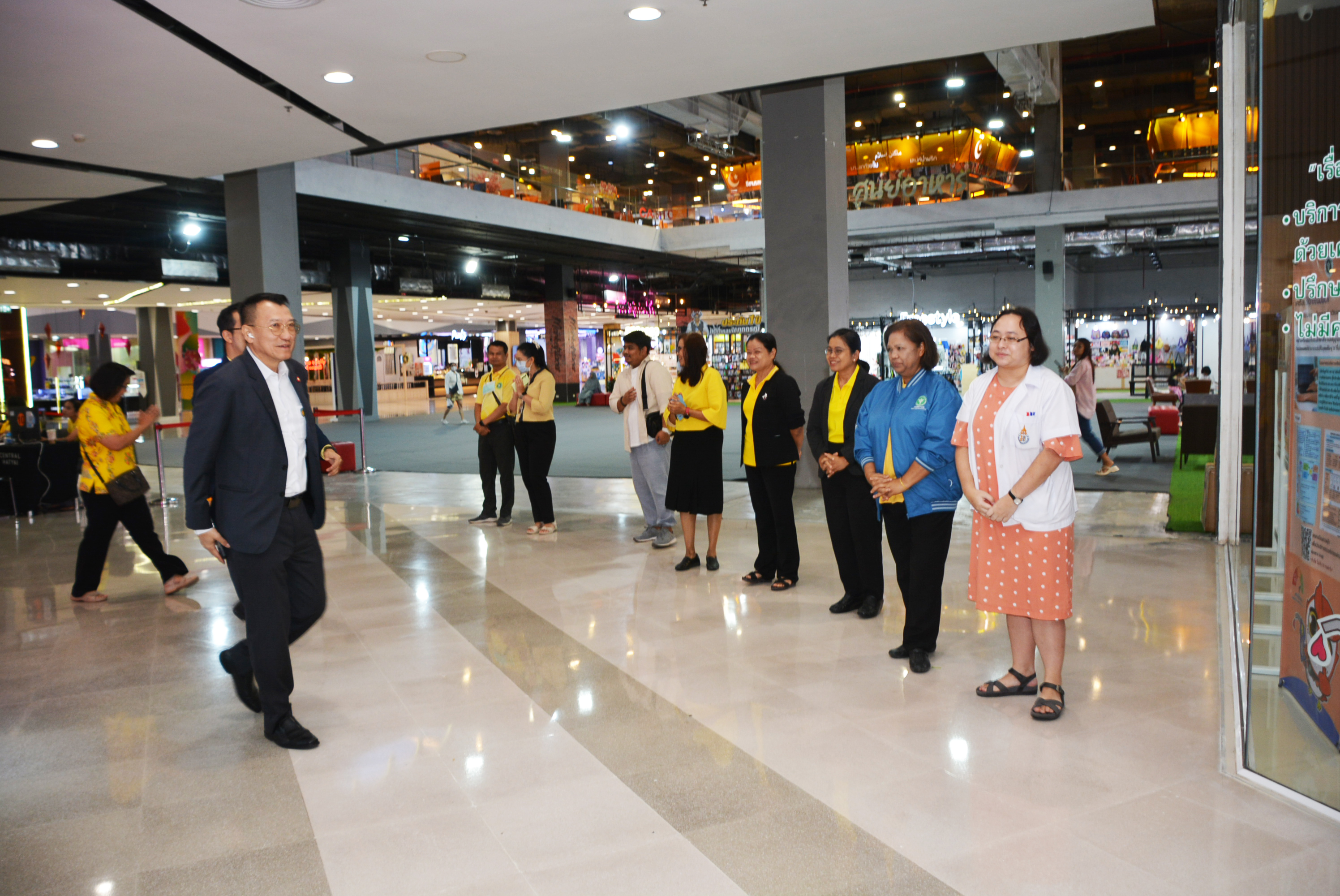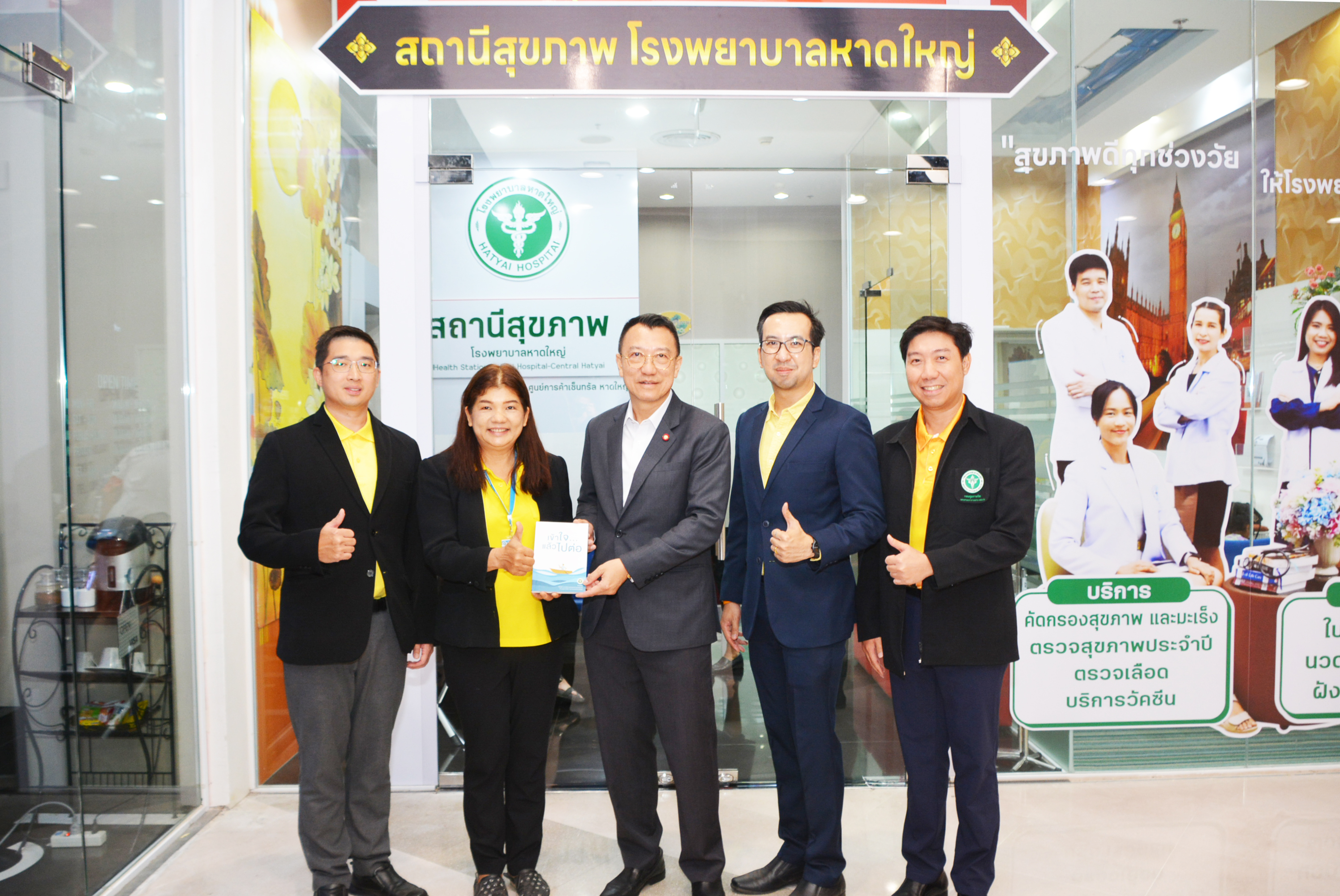 มีนายแพทย์ธิติพันธ์ ธานีรัตน์ ผู้อำนวยการโรงพยาบาลจิตเวชสงขลาราชนครินทร์ นายแพทย์อาทิตย์ เล่าสุอังกูร ผู้อำนวยการโรงพยาบาลสวนสราญรมย์ นายแพทย์นพพร ตันติรังสี ผู้อำนวยการสถาบันสุขภาพจิตเด็กและวัยรุ่นภาคใต้ คุณปรีดี ปรัชญ์ดำรงค์กิจ ผู้อำนวยการศูนย์การค้าเซ็นทรัลหาดใหญ่ และคณะกรรมการขับเคลื่อนสถานีเติมสุขร่วมให้การต้อนรับ