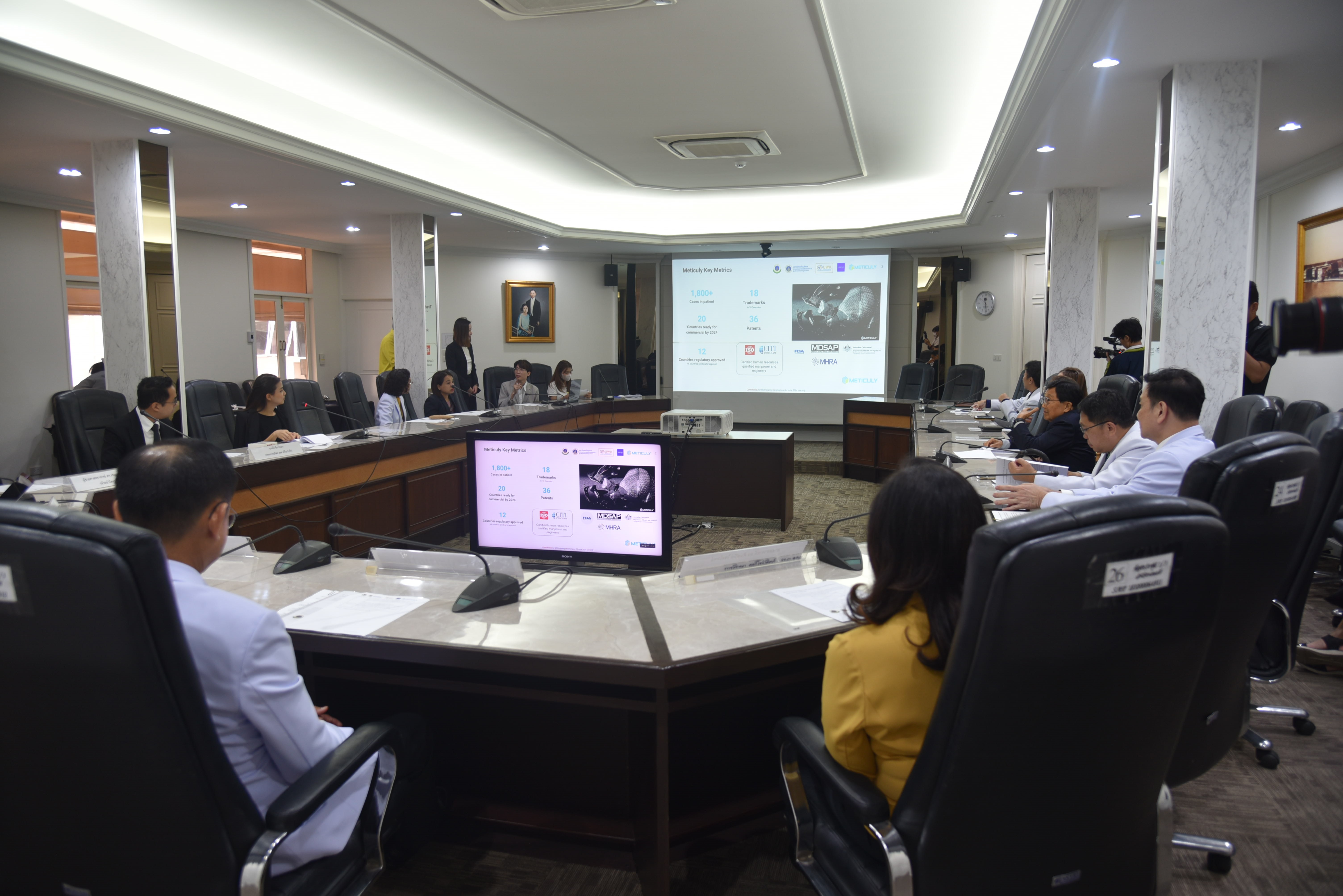 ในพิธีนี้ได้รับเกียรติจาก ศาสตราจารย์นายแพทย์อภิชาติ อัศวมงคลกุล คณบดีคณะแพทยศาสตร์ศิริราชพยาบาล มหาวิทยาลัยมหิดล, ศาสตราจารย์ นายแพทย์กีรติ เจริญชลวานิช หัวหน้าภาควิชาศัลยศาสตร์ ออร์โธปิดิกส์และกายภาพบำบัด คณะแพทยศาสตร์ศิริราช พยาบาล,รองศาสตราจารย์ นายแพทย์ธีระ กลลดาเรืองไกร ผู้อำนวยการศูนย์การแพทย์กาญจนาภิเษก มหาวิทยาลัยมหิดล, ศาสตราจารย์ ดร.ศันสนียI ไชยโรจน์ ประธานอนุกรรมการแผนงานกลุ่มสุขภาพและการแพทย์หน่วยบริหารและจัดการทุนด้านการ เพิ่มความสามารถในการแข่งขันของประเทศ (บพข.), นายธีร์ ธีระโกเมน ประธานเจ้าหน้าที่บริหารสายปฏิบัติการ บริษัท เอ็มเค เรสโต รองต์ กรุ๊ป จำกัด (มหาชน), รองศาสตราจารย์ ดร.บุญรัตน์ โล่วงศ์วัฒน ประธานเจ้าหน้าที่บริหาร บริษัท เมติคูลี่ จำกัด, นายสุเมธ ไชยสูรยกานต์ กรรมการผู้จัดการ บริษัท ออส ทรีโอ จำกัด และ ผู้ช่วยศาสตราจารย์ ดร.เชษฐา พันธ์เครือบุตร หัวหน้าโครงการวิจัย มาร่วมในพิธีลงนามบันทึกข้อตกลงร่วมมือในครั้งนี้