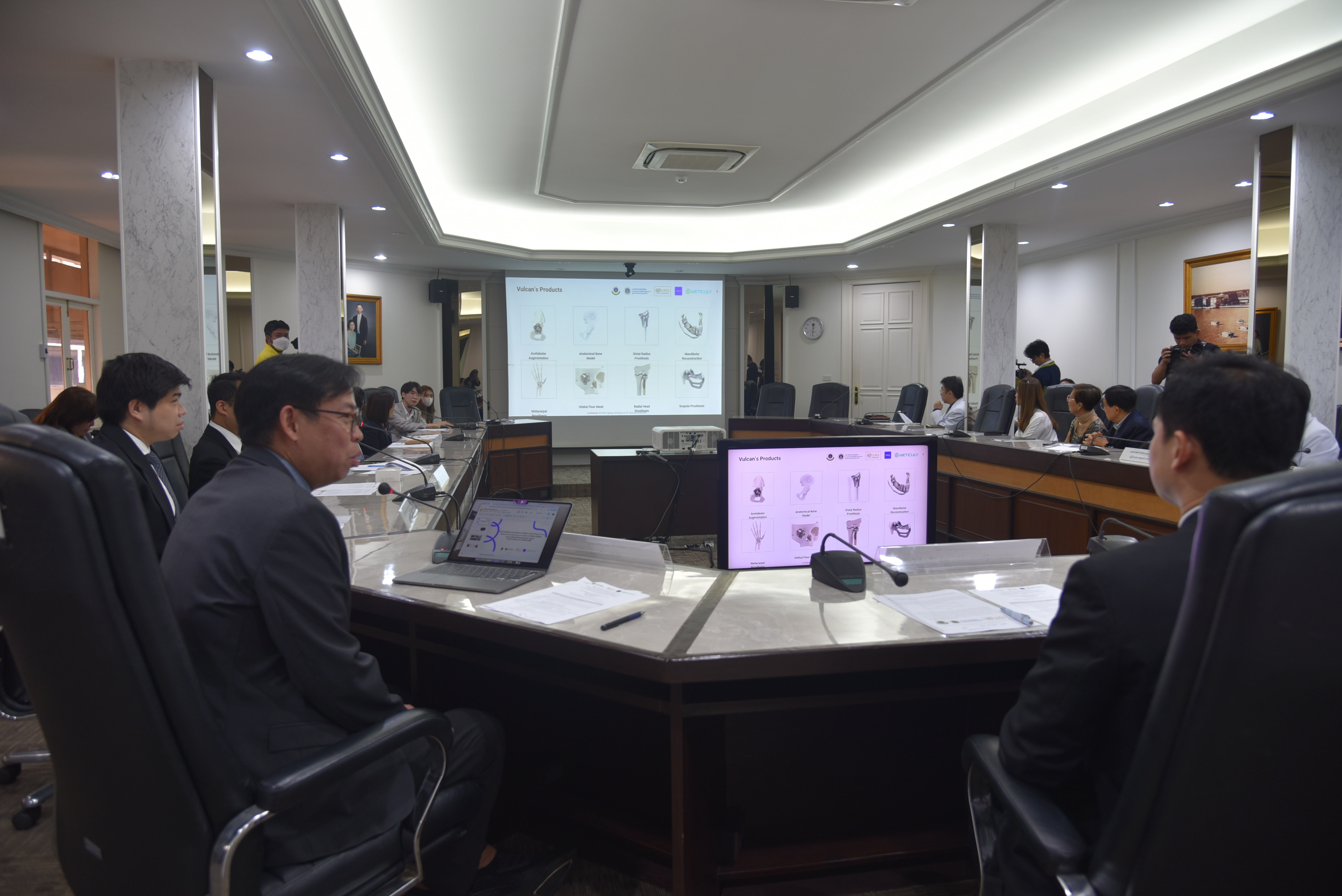 วันที่ 24 มิถุนายน พ.ศ. 2564 – เวลา 11.00 น. ณ ตึกอำนวยการ โรงพยาบาลศิริราช ได้มีพิธีลงนามบันทึกข้อตกลงร่วมมือดานการ วิจัย (MOU) โครงการต่อยอดการแพทยIครบวงจรที่จุดการรักษา (Point of Care) ด้วยกระบวนการออกแบบการวางแผนการผ่าตัด แบบดิจิตอลและการผลิตเครื่องมือแพทยIเฉพาะบุคคลด้วยโลหะไทเทเนียมจากการพิมพIสามมิติ ระหว่างมหาวิทยาลัยมหิดล (คณะ แพทยศาสตร์ศิริราชพยาบาล) และบริษัท ออส ทรีโอ จำกัด และบริษัท เมติคูลี่ จำกัด