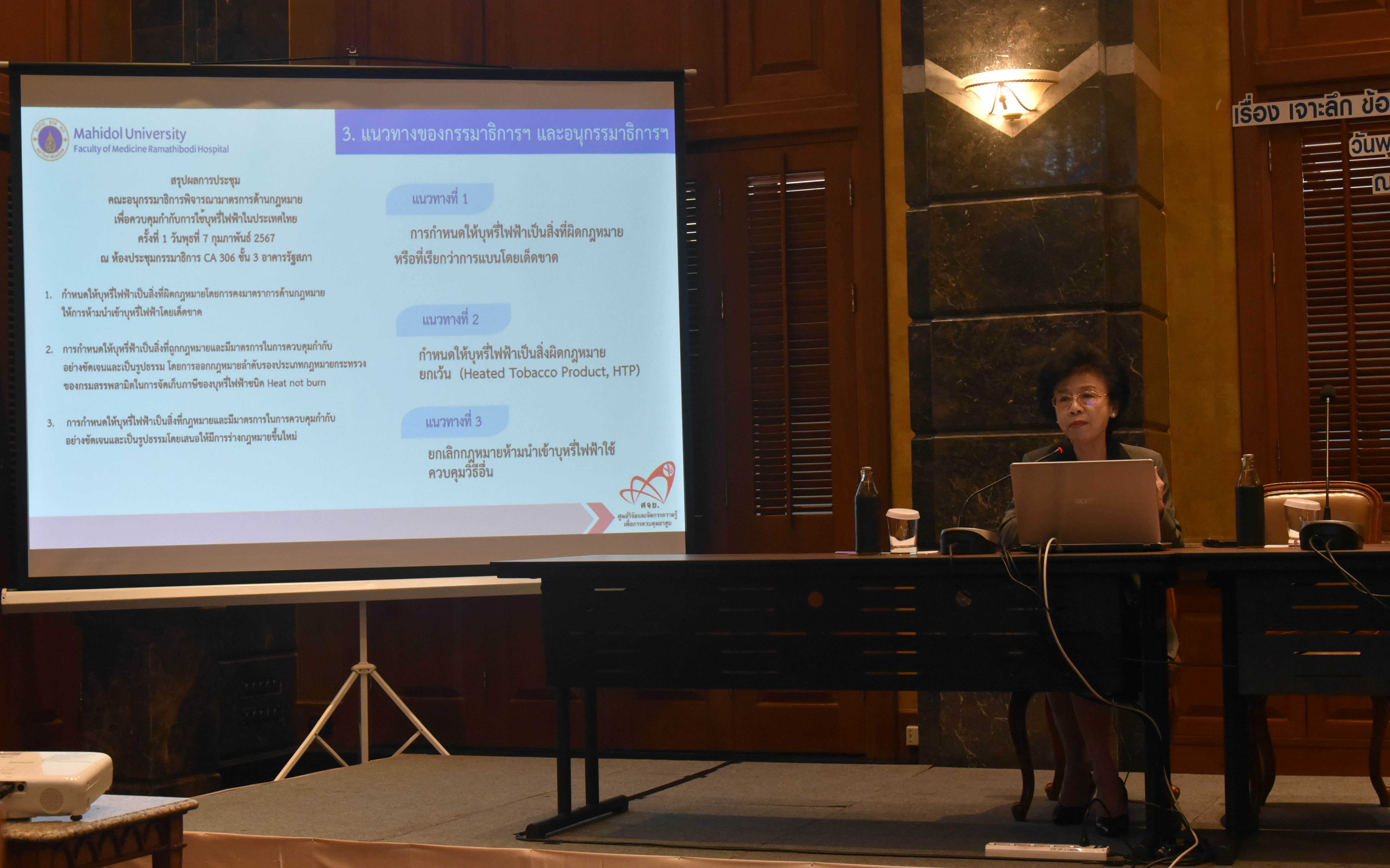 เมื่อวันที่ 10 ก.ค.2567 ที่โรงแรมเดอะสุโกศล กรุงเทพฯ ศูนย์วิจัยและจัดการความรู้เพื่อการควบคุมยาสูบ(ศจย.)จัดงานเสวนาสื่อเรื่อง “เจาะลึกข้อดีข้อเสีย 3 แนวทางของอนุกรรมาธิการวิสามัญพิจารณาศึกษากฎหมายและมาตรการควบคุมกำกับบุหรี่ไฟฟ้าในประเทศไทย” เพื่อให้ข้อมูลอย่างรอบด้าน ถึงข้อดีข้อเสียในการที่จะกำหนดมาตรการต่างๆ ในการควบคุมบุหรี่ไฟฟ้า เพื่อให้กรรมาธิการฯ ทราบถึงข้อเท็จจริง และพิจารณาอย่างรอบคอบในเรื่องนี้ คำนึงถึงผลกระทบของประชาชน ปกป้องเด็กและ เยาวชนจากภัยบุหรี่ไฟฟ้า ได้รับเกียติเปิดงาน โดย ศ.นพ.ไชยรัตน์ เพิ่มพิกุล ประธานราชวิทยาลัยอายุรแพทย์แห่งประเทศไทย