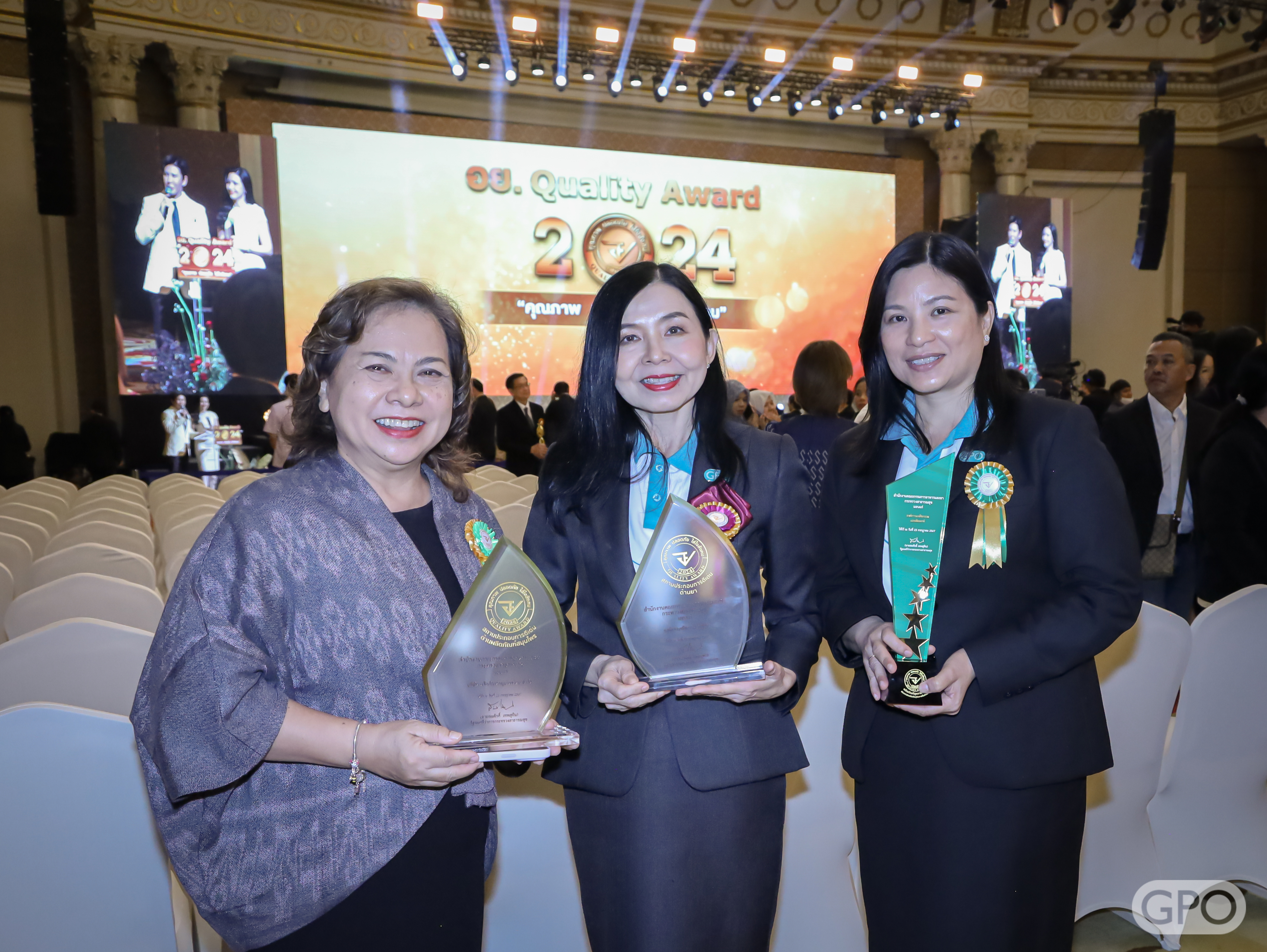 องค์การเภสัชกรรม ได้รับรางวัล อย.ควอลิตี้อวอร์ด อย่างต่อเนื่องทุกปี ตั้งแต่ปี 2559 – ปี 2567 โดยองค์การเภสัชกรรม ธัญบุรี ได้รับรางวัลรางวัลสถานประกอบการดีเด่นด้านยาปี 2567 ซึ่งดำเนินงานการ ผลิตยาตามหลักเกณฑ์และวิธีการที่ดีในการผลิตหรือ GMP PIC/S และหลักเกณฑ์วิธีการที่ดีในการกระจายยาหรือ GDP พร้อมมุ่งมั่นยกระดับสู่มาตรฐานระดับสากล WHO GMP มีการรักษาคุณภาพมาตรฐานการผลิตด้วยดีมาโดยตลอด ในทุกขั้นตอนของกระบวนการผลิต ตั้งแต่การรับเข้าวัตถุดิบและบรรจุภัณฑ์ การชั่งจ่าย การผลิตและการบรรจุผลิตภัณฑ์ มีฝ่ายประกันคุณภาพที่ควบคุม ติดตาม และดูแลตลอดกระบวนการผลิตยา มีการนำระบบเทคโนโลยีสารสนเทศ ใช้ในการบริหารจัดการที่ได้รับการตรวจรับรองความถูกต้อง มีห้องปฏิบัติการทดสอบและสอบเทียบที่ได้รับมาตรฐาน ISO/IEC 17025 : 2017 มีการดูแลสิ่งแวดล้อมตามมาตรฐานการจัดการที่ดีด้านสิ่งแวดล้อม (ISO 14001:2015) เป็นอุตสาหกรรมสีเขียว ระดับที่ 3 ระบบสีเขียว (Green System) มีการบริหารจัดการสิ่งแวดล้อมอย่างเป็นระบบมีการนำเทคโนโลยีสมัยใหม่ที่สากลให้การยอมรับมาใช้ในกระบวนการผลิตอีกทั้งยังมีมาตรฐานการจัดการพลังงานสากล (ISO 50001:2018) ทำให้องค์กรสามารถปรับปรุงประสิทธิภาพ การใช้พลังงาน ช่วยลดการใช้พลังงานและลดต้นทุนลง