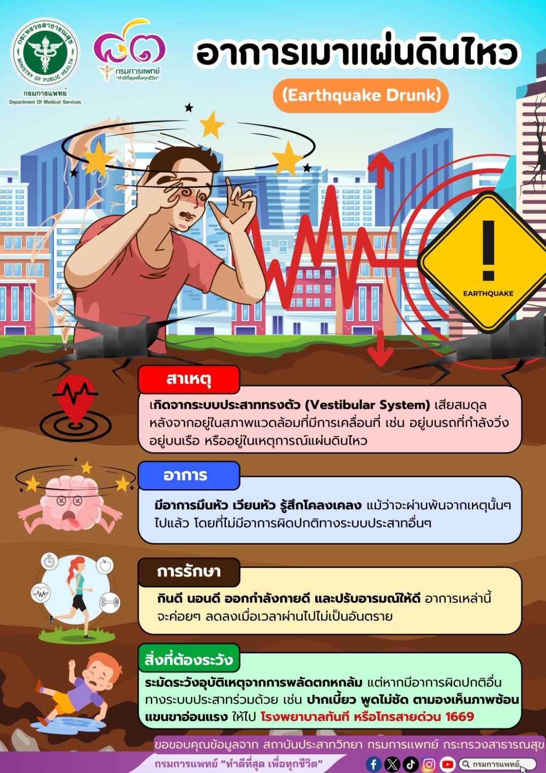 #สถาบันประสาทวิทยา #กรมการแพทย์ #โรงพยาบาลเฉพาะทางโรคสมองและระบบประสาทไขสันหลังของรัฐ #เมาแผ่นดินไหว #เวียนหัว