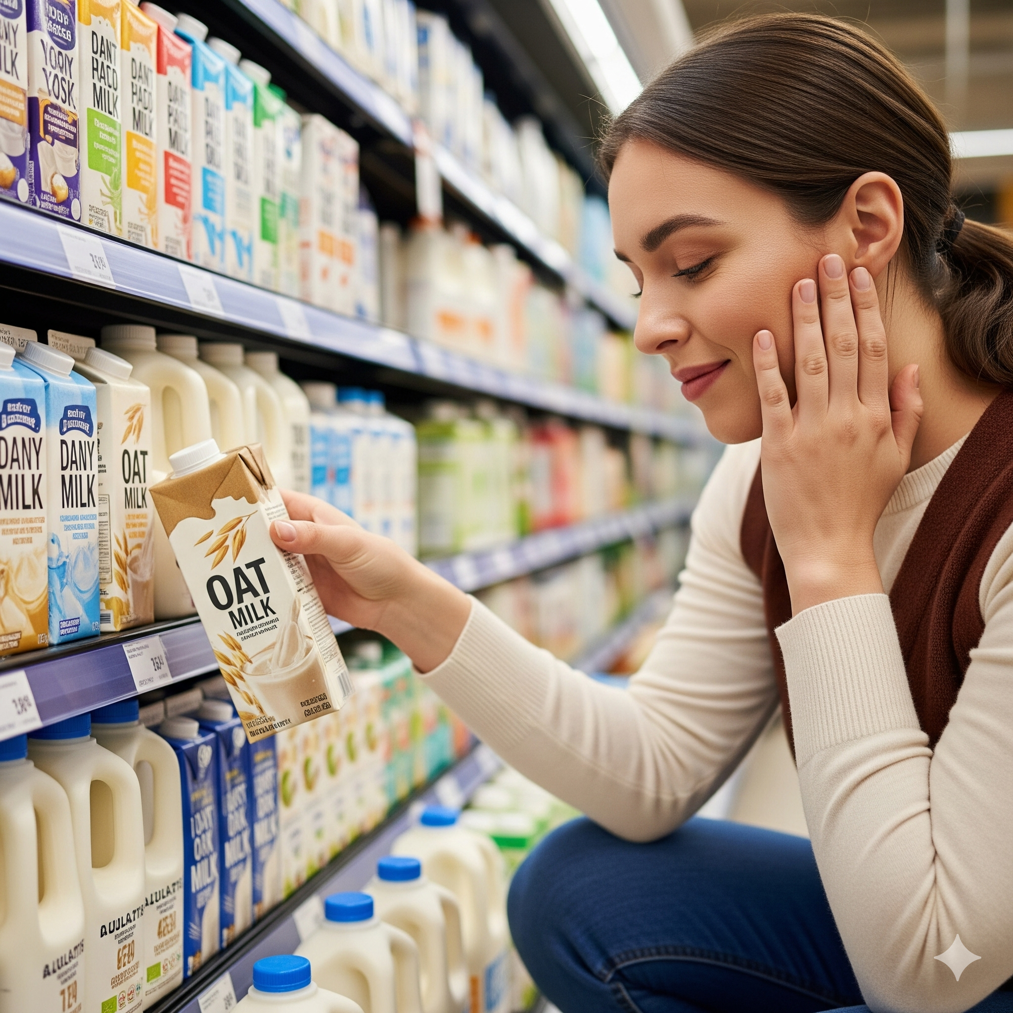 อย่างไรก็ตาม ก็มีข้อควรระวังเช่นกัน คือปริมาณน้ำตาลและคาร์โบไฮเดรต: นมข้าวโอ๊ตมีคาร์โบไฮเดรตสูงกว่านมทางเลือกอื่น ๆ บางชนิด โปรตีนน้อย: มีปริมาณโปรตีนไม่สูงเท่ากับนมวัวหรือนมถั่วเหลือง