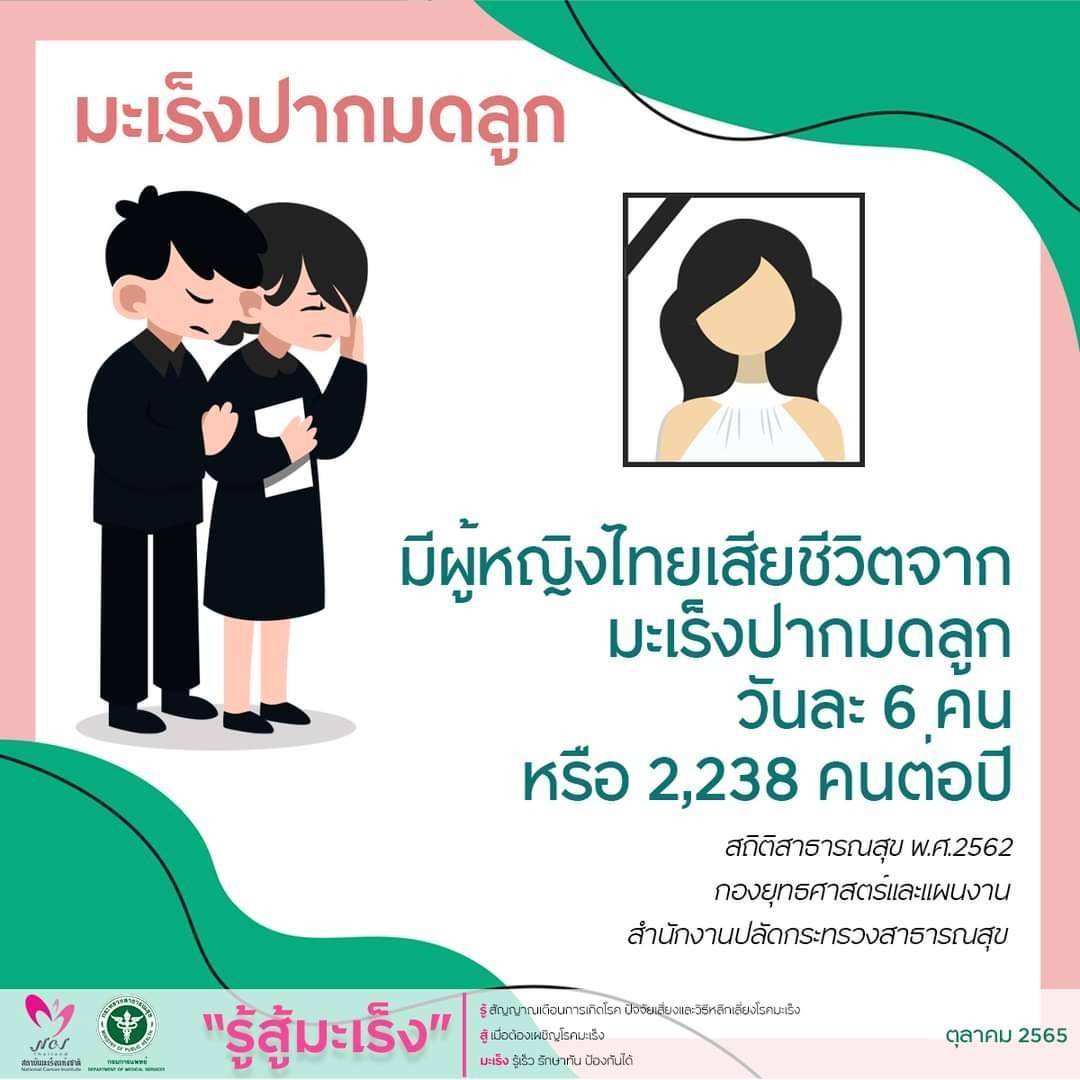 นายแพทย์วีรวุฒิ อิ่มสำราญ รองอธิบดีกรมการแพทย์ กล่าวว่า มะเร็งปากมดลูกถือเป็นปัญหาสาธารณสุขที่สำคัญของประเทศไทยมาตั้งแต่ปี 2532 ซึ่งพบอุบัติการณ์การเกิดมะเร็งปากมดลูกสูงเป็นอันดับหนึ่งในผู้หญิงไทย จากนั้นมีการผลักดันนโยบายการคัดกรองมะเร็งปากมดลูกระดับประเทศขึ้นทำให้อุบัติการณ์มะเร็งปากมดลูกมีแนวโน้มลดลงอย่างต่อเนื่องโดยปัจจุบันมะเร็งปากมดลูกจัดอยู่ในอันดับ 5 ของมะเร็งที่พบบ่อยในผู้หญิงไทย มีผู้ป่วยรายใหม่เฉลี่ยวันละ 15 ราย หรือ 5,422 คนต่อปี (Cancer in Thailand Vol.X 2016-2018 สถาบันมะเร็งแห่งชาติ กรมการแพทย์ กระทรวงสาธารณสุข) และเสียชีวิตเฉลี่ย วันละ 6 ราย หรือ 2,238 คนต่อปี (สถิติสาธารณสุข พ.ศ.2562 กองยุทธศาสตร์และแผนงาน สำนักงานปลัดกระทรวงสาธารณสุข)มะเร็งปากมดลูกมีสาเหตุหลัก ๆ มาจากการติดเชื้อไวรัส Human Papillomavirus (HPV) ที่ติดต่อจากการมีเพศสัมพันธ์ ดังนั้น การมีคู่นอนหลายคน การมีเพศสัมพันธ์ตั้งแต่อายุน้อย จึงเป็นการเพิ่มความเสี่ยงต่อการติดเชื้อมากขึ้น นอกจากนี้ การสูบบุหรี่ การมีภาวะภูมิคุ้มกันต่ำ ก็เป็นอีกปัจจัยร่วมที่อาจเพิ่มความเสี่ยงในการเกิดโรคอีกด้วย อาการที่เป็นสัญญาณเตือนของมะเร็งปากมดลูก ได้แก่ มีตกขาว เลือดหรือของเหลวที่ผิดปกติออกทางช่องคลอด ประจำเดือนมามากหรือนานกว่าปกติ ในระยะลุกลามอาจมีอาการปวดหน่วงบริเวณท้องน้อย ปัสสาวะขัดหรือถ่ายอุจจาระลำบาก เบื่ออาหาร น้ำหนักลด เป็นต้น