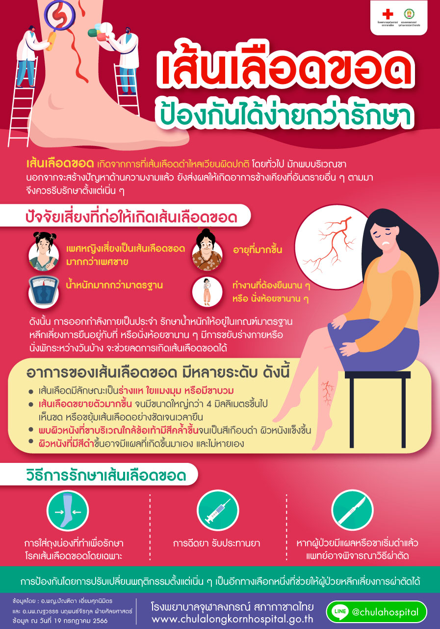 เส้นเลือดขอด เกิดจากการที่เส้นเลือดดำไหลเวียนผิดปกติ โดยทั่วไปมักพบบริเวณขา นอกจากจะสร้างปัญหาด้านความงามแล้ว ยังส่งผลให้เกิดอาการข้างเคียงที่อันตรายอื่น ๆ ตามมา จึงควรรีบรักษาตั้งแต่เนิ่น ๆ