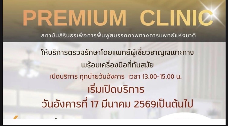 พร้อมเปิดแล้ว Premium Clinic 17 มีนาคม 2569 ฟื้นฟูสมรรถภาพผู้ป่วย