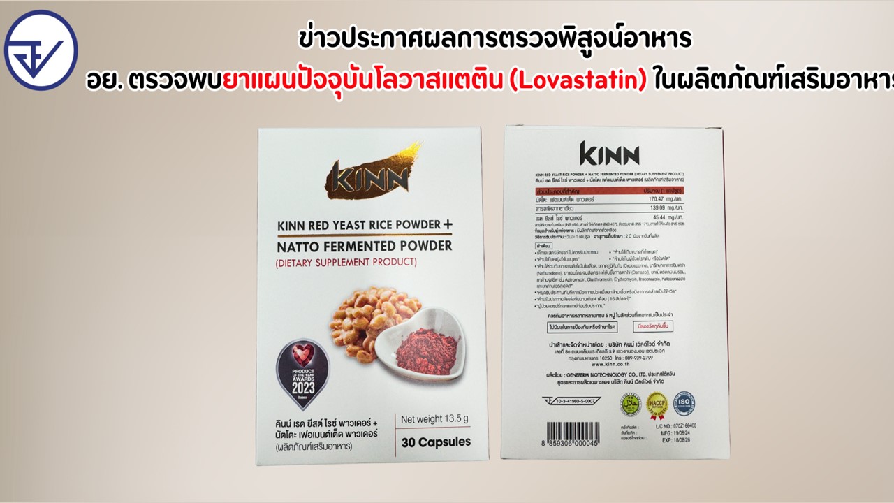 อย. ตรวจพบยาแผนปัจจุบันโลวาสแตติน (Lovastatin) ในผลิตภัณฑ์เสริมอาหาร
