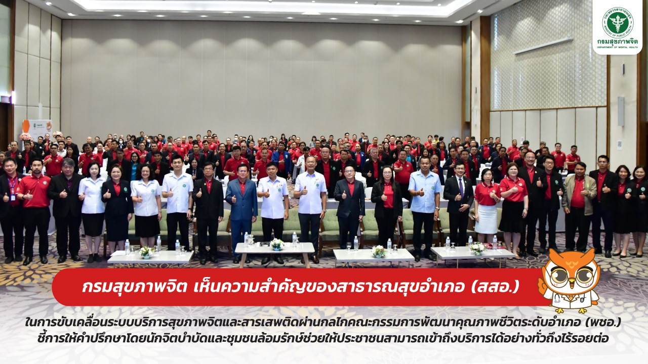 กรมสุขภาพจิต เห็นความสำคัญของสาธารณสุขอำเภอในการขับเคลื่อนระบบบริการสุขภาพจิตและสารเสพติดผ่านกลไกคณะกรรมการพัฒนาคุณภาพชีวิตระดับอำเภอ (พชอ.)
