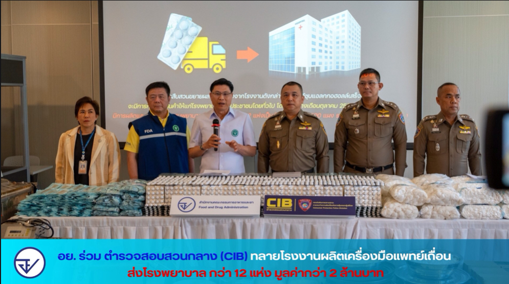 อย. ร่วม ตำรวจสอบสวนกลาง (CIB) ทลายโรงงานผลิตเครื่องมือแพทย์เถื่อน ส่งโรงพยาบาล กว่า 12 แห่ง มูลค่ากว่า 2 ล้านบาท