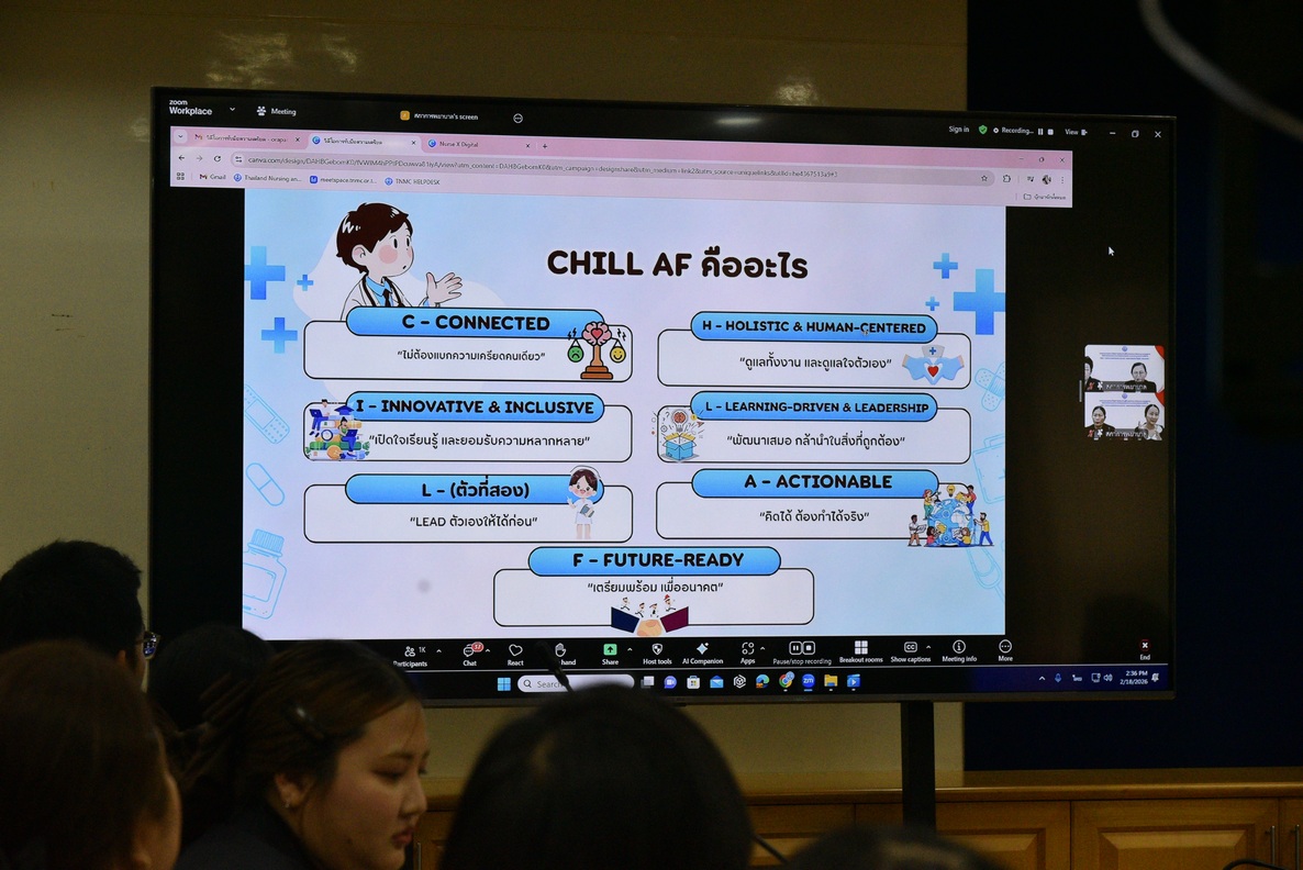 จากผลงานที่ได้รับรางวัลชนะเลิศอันดับ2 นี้ นางสาวศรินนากล่าวถึงแนวคิด CHILL AF : กลยุทธ์การจัดการความเครียดและการทำงานอย่างมีประสิทธิภาพสำหรับพยาบาล คือ "แนวคิด CHILL AF ไม่ได้สื่อถึงการทำงานแบบสบายเกินไป แต่เป็นโครงสร้างทางความคิด (Mindset) ที่ช่วยให้พยาบาลสามารถบริหารจัดการภาระงานและความกดดันได้อย่างเป็นระบบ โดยมีรายละเอียดของแต่ละตัวอักษรดังนี้ค่ะ C - Connective: การเชื่อมต่อและการทำงานเป็นทีม หัวใจสำคัญคือการไม่แบกความเครียดไว้เพียงลำพัง พยาบาลต้องกล้าที่จะสื่อสาร พูดคุย และขอคำปรึกษาจากเพื่อนร่วมงานหรือหัวหน้าเวร (Pee Board) การทำงานเป็นทีมที่เข้มแข็งจะช่วยลดทอนความกดดันส่วนบุคคล และส่งผลโดยตรงให้ประสิทธิภาพในการดูแลผู้ป่วยดียิ่งขึ้น H - Holistic and Human Centered: การดูแลแบบองค์รวม เป็นการใส่ใจทั้งเนื้องาน สภาพร่างกาย และจิตใจของตนเอง การเป็นผู้ดูแลที่ดีต้องเริ่มต้นจากการดูแลตัวเองให้พร้อมเสียก่อน เมื่อพื้นฐานจิตใจและร่างกายของเราแข็งแรง เราจึงจะสามารถส่งต่อการดูแลที่มีคุณภาพไปสู่ผู้อื่นได้อย่างเต็มที่ I - Innovative: การเปิดรับและแลกเปลี่ยนเรียนรู้ในที่นี้เน้นไปที่การเปิดใจยอมรับความคิดเห็นที่แตกต่างจากเพื่อนร่วมทีม เมื่อเราปรับตัวและรับฟังมุมมองใหม่ๆ ความเครียดจากการทำงานร่วมกับผู้อื่นจะลดน้อยลง ช่วยให้การทำงานในสภาพแวดล้อมที่หลากหลายเป็นไปอย่างราบรื่น L (1) - Learning and Leadership: การเรียนรู้และความเชื่อมั่น ความมั่นใจในการปฏิบัติงานเกิดจากการเรียนรู้และพัฒนาตนเองอย่างต่อเนื่อง พยาบาลควรกล้าที่จะยอมรับความผิดพลาดและพร้อมแก้ไขทันทีโดยการขอคำแนะนำ การเตรียมความพร้อมทางความรู้จะช่วยให้เราสามารถรับมือกับสถานการณ์วิกฤตได้อย่างมืออาชีพ L (2) - Self-Leadership: ภาวะผู้นำในตนเองนี่คือตัวอักษรที่สำคัญมาก ซึ่งเน้นไปที่การควบคุมอารมณ์และระเบียบวินัยในการทำงาน การมีสติสัมปชัญญะในทุกสถานการณ์จะช่วยให้พยาบาลจัดการกับสภาวะบีบคั้นได้โดยไม่ใช้อารมณ์เป็นที่ตั้ง A - Actionable: แนวคิดที่ปฏิบัติได้จริง ทุกกลยุทธ์ต้องสามารถนำไปปรับใช้ได้ในชีวิตจริง เช่น การวางแผนพักผ่อนอย่างเป็นระบบ หรือการนำเทคนิคเฉพาะหน้ามาใช้จัดการงาน เพื่อให้เกิดผลลัพธ์ที่เป็นรูปธรรมมากกว่าเพียงแค่หลักการในกระดาษ F - Future Ready: การเตรียมพร้อมสู่อนาคต คือการบ่มเพาะทักษะทางวิชาชีพและความยืดหยุ่นทางอารมณ์ (Resilience) ให้พร้อมรับมือกับการเปลี่ยนแปลง เมื่อเรามีความพร้อมในทุกด้าน เราจะสามารถเติบโตในสายอาชีพได้อย่างยั่งยืนและมั่นคง"นางสาวศรินนา ได้กล่าวถึงแนวทางการป้องกันภาวะหม