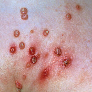 ผู้ป่วยงูสวัด ในระยะเริ่มต้นเป็นตุ่มน้ำใสให้รักษาแผลให้สะอาด หากตุ่มน้ำแตกต้องระวังแบคทีเรียเข้าสู่แผล เกิดการติดเชื้อได้ ควรล้างแผลด้วยน้ำเกลือสะอาด ปิดแผลด้วยผ้าก๊อซ ถ้าปวดแผลมาก สามารถทานยาแก้ปวดได้ ที่สำคัญไม่ควรใช้แกะเกาตุ่มงูสวัด เพราะอาจกลายเป็นตุ่มหนอง แผลหายช้า หรือเกิดแผลเป็นได้