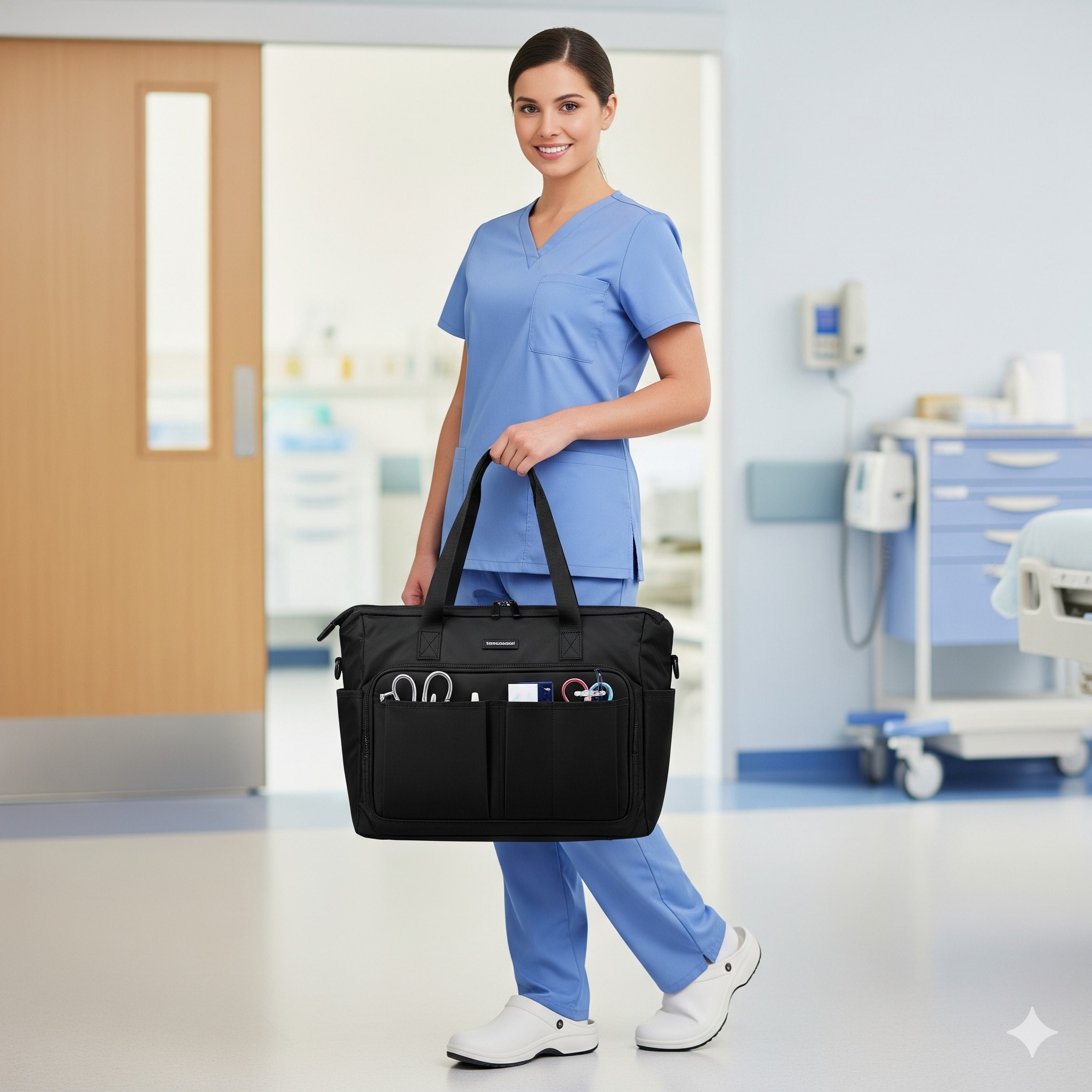 กระเป๋าของพยาบาลไม่ได้มีไว้แค่ใส่ของส่วนตัว แต่ยังต้องช่วยพกพาอุปกรณ์ที่จำเป็น เน้นฟังก์ชันการใช้งาน โดยมีช่องแบ่งหลายช่อง วัสดุที่ทนทานและทำความสะอาดง่าย และมี ขนาดกะทัดรัดแต่จุของได้เยอะ เพื่อให้พกพาได้อย่างสะดวก
