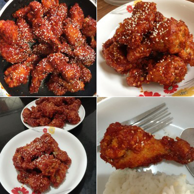 สูตรจาก เว็บไซต์ payunbud ถ้าลองทำบูเดชิเกหรือหม้อไฟเกาหลีกินเองรับรองอิ่มคุ้ม จะใช้บะหมี่กึ่งสำเร็จรูปแบบไทยหรือแบบเกาหลีก็ได้ เครื่องเคราจัดเอาตามชอบ แต่ที่สำคัญต้องใส่ซอสโคชูจังลงไปด้วย ส่วนผสม บูเดชิเก ไส้กรอก (หรือผลิตภัณฑ์เนื้อสัตว์แปรรูปตามชอบ) บะหมี่กึ่งสำเร็จรูปรสต้มยำกุ้ง หรือบะหมี่กึ่งสำเร็จรูปเกาหลี ไข่ไก่ ผักตามชอบ (เช่น ต้นหอมญี่ปุ่นซอย, แครอตหั่นแว่น, เห็ด, ผักกาดขาว, กะหล่ำปลี เป็นต้น) สาหร่าย โคชูจัง น้ำมันงา วิธีทำหม้อไฟเกาหลี 1. ใส่เส้นบะหมี่กึ่งสำเร็จรูปลงตรงกลางของกระทะ ตามด้วยเครื่องเคราอื่น ๆ ที่หั่นเตรียมไว้วางเรียงลงไปให้ทั่ว หมายเหตุ : ปกติถ้าใช้บะหมี่กึ่งสำเร็จรูปเกาหลี จะใส่ผงปรุงรสลงไปด้วย ในสูตรใช้บะหมี่กึ่งสำเร็จรูปไทยก็ใส่ได้ แต่มีข้อควรระวังว่า - ถ้าชอบแบบแซ่บเหมือนต้มยำ ให้ใส่ผงบะหมี่กึ่งสำเร็จรูป 2 ซอง + โคชูจัง 1 ช้อนโต๊ะ - ถ้าชอบแบบมีรสผสม ให้ใส่ผงบะหมี่กึ่งสำเร็จรูปแค่ 1/2 ซอง + โคชูจัง 1 ช้อนโต๊ะ - ถ้าชอบแบบเกาหลีมากกว่า ให้ใส่แต่โคชูจังโปะไปราว 1+1/2 ช้อนโต๊ะพูน ๆ ราดน้ำมันงาและพริกขี้หนู แล้วใส่น้ำซุปหรือน้ำผสมผงซุปนิดหน่อยแทน ซึ่งสูตรนี้เป็นแบบแรก คือ ใส่ทั้งผงบะหมี่กึ่งสำเร็จรูปและเครื่องบะหมี่กึ่งสำเร็จรูปลงไป 2. ตักโคชูจังช้อนใหญ่ ๆ ใส่ลงไปตรงกลางบะหมี่กึ่งสำเร็จรูป ใส่น้ำลงไปจนเกือบท่วมเส้น นำขึ้นตั้งไฟ 3. ต้มไปสักครู่จนเส้นบะหมี่กึ่งสำเร็จรูปเริ่มนิ่มและน้ำเดือด ระหว่างต้มถ้ากลัวน้ำแห้ง สามารถใส่เพิ่มได้ แต่อย่าให้ท่วม ไม่อย่างนั้นจะเจือจาง หม้อไฟแบบนี้ใส่น้ำแค่พอขลุกขลิก พอเส้นสุกตามชอบยกออกจากเตา พร้อมเสิร์ฟ https://cooking.kapook.com/view114118.html 2. ไก่ทอดเกาหลี